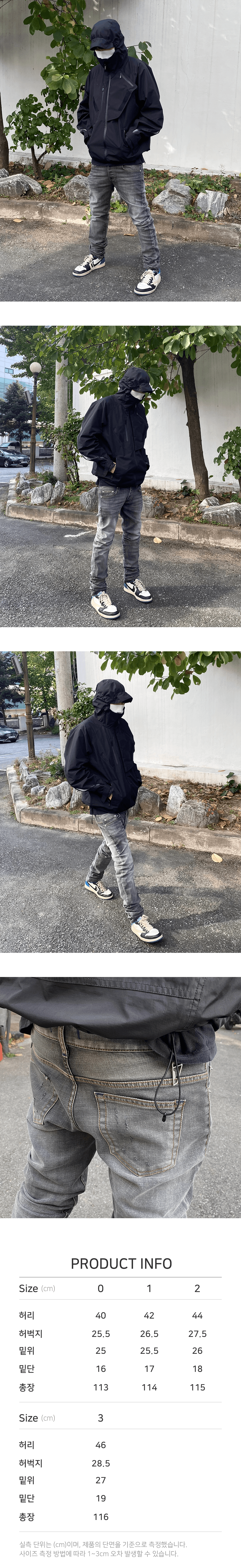 언더마이카 리전.03 슬림핏 블루 스티치 워시드 진 워시드 그레이