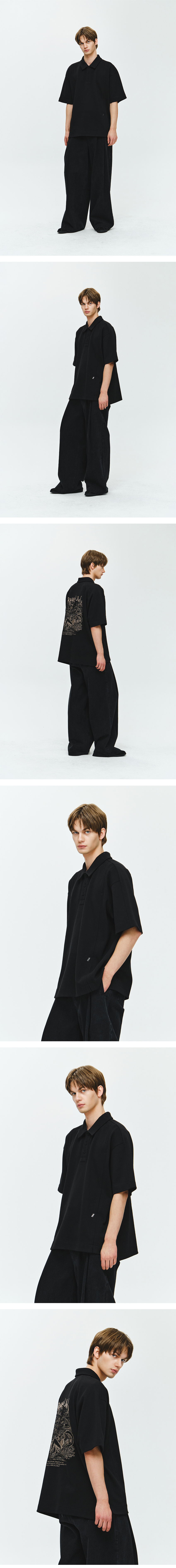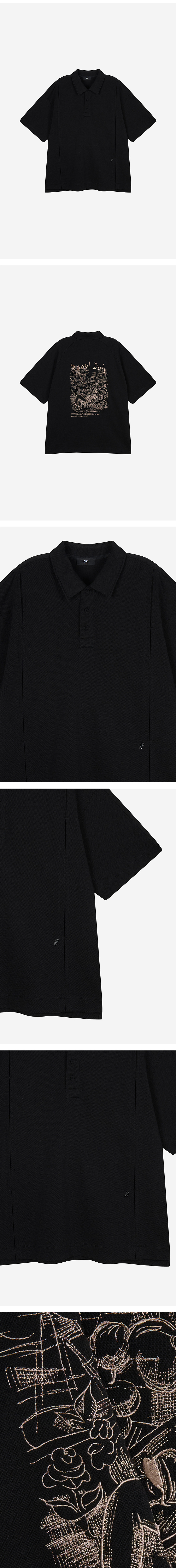 ZIOSONGZIO COLLECTION Madrigaux Embroidered Collared T-Shirt Black