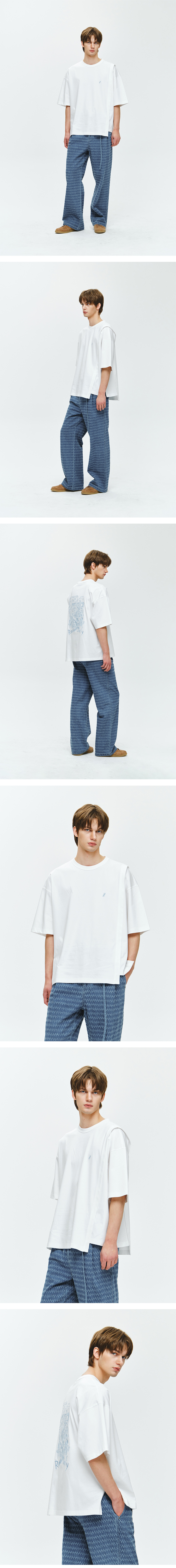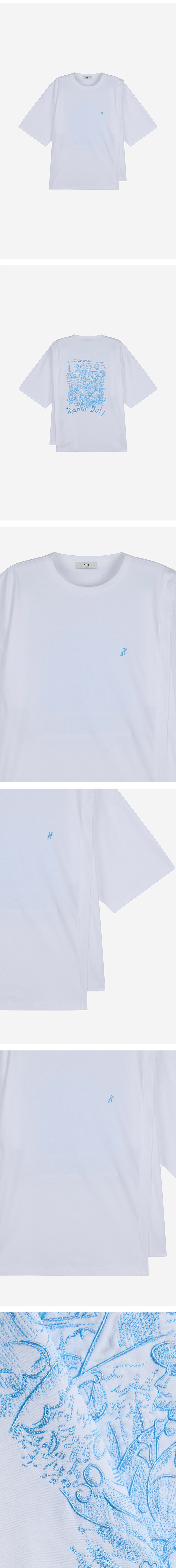 - 지오송지오 포쇼 어시메트릭 티셔츠 화이트 - 소프트한 터치감의 양면 실켓 소재 사용 - 여유있는 오버 실루엣 - 앞면 어시메트릭 절개 디자인 - 앞면 ZIO 자수 적용 - 뒷면 라울뒤피 작품 엠브로이드 아트워크 적용