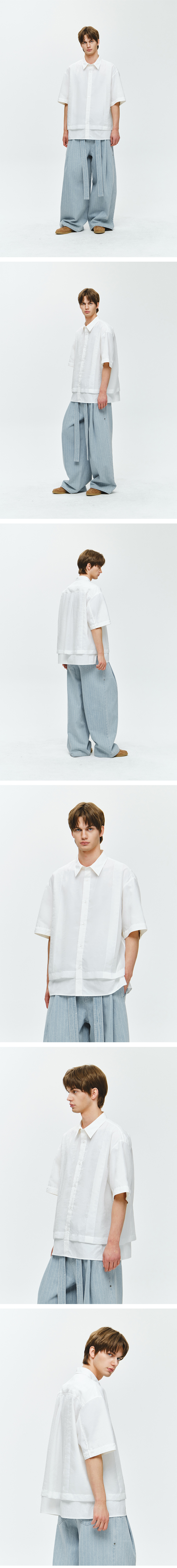 지오송지오 컬렉션 오간자 레이어드 크롭 하프 셔츠 화이트 BI3SH302WH