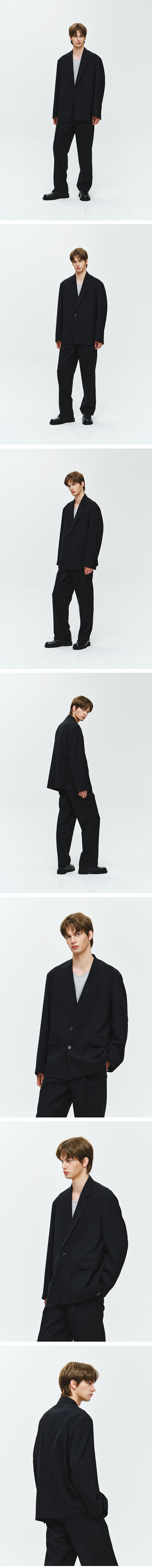 - 2 BUTTON OVER DROP FIT - 2버튼 라펠 디테쳐블 실루엣으로, 아방가르드한 룩 표현 - 이태리 MARZOTTO 수입소재 - 라펠 디테쳐블 디자인으로 다양한 연출 가능 - 원턱 세미와이드 실루엣의 팬츠로, 자켓과 함께 아방가르드한 실루엣 표현 - BI2PT265DN와 세트 구성