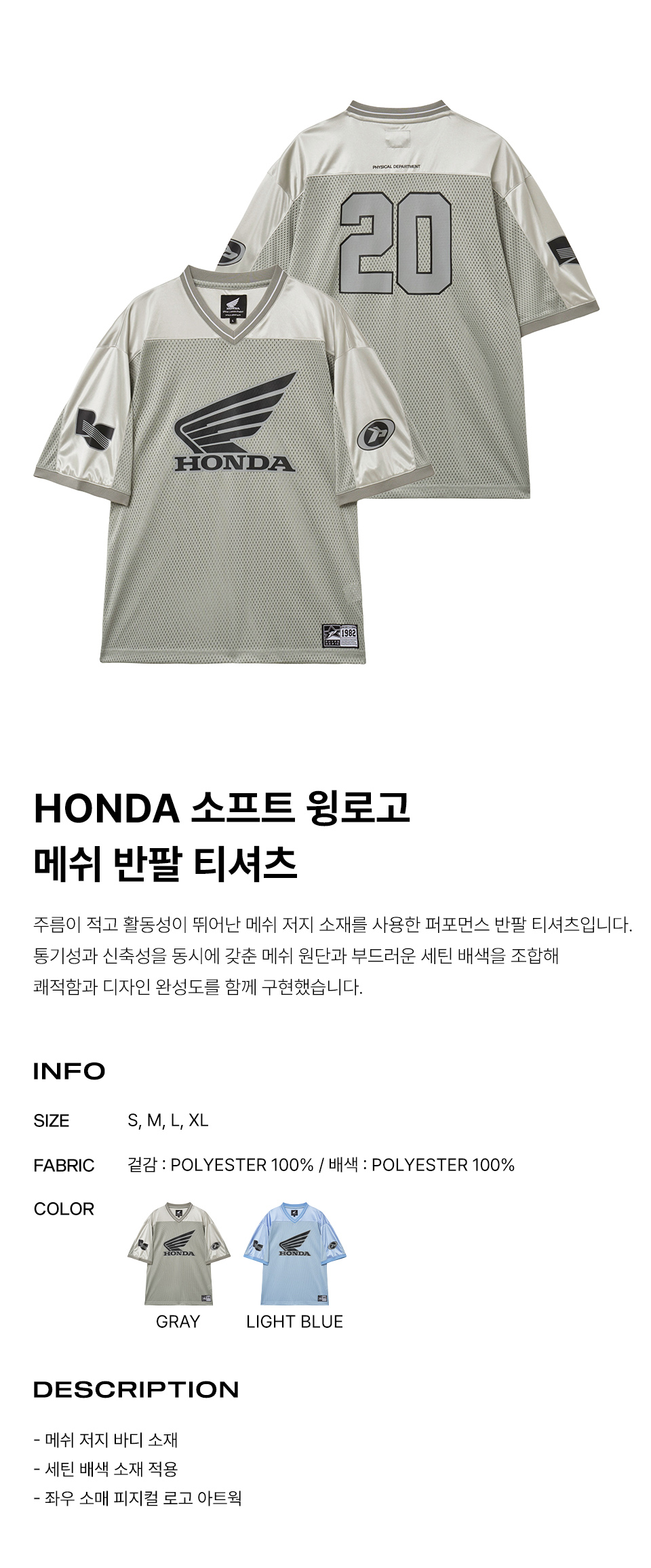 [KREAM 단독] Honda Original Wing Logo Mesh T-Shirt Gray