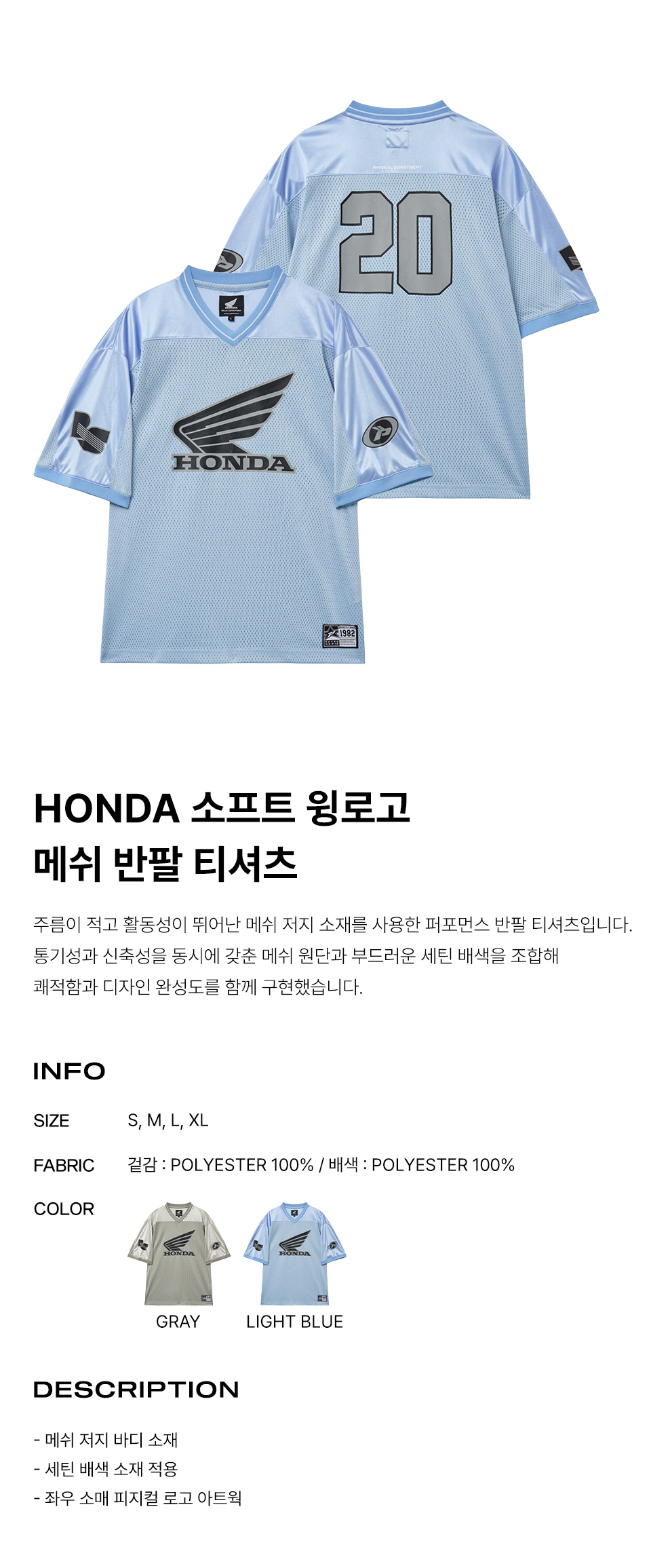 혼다 오리지널 윙 로고 메쉬 티셔츠 라이트 블루