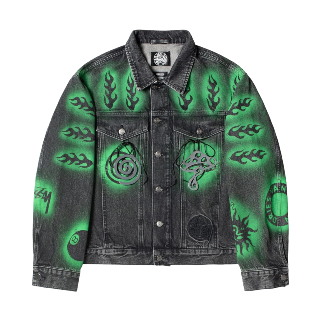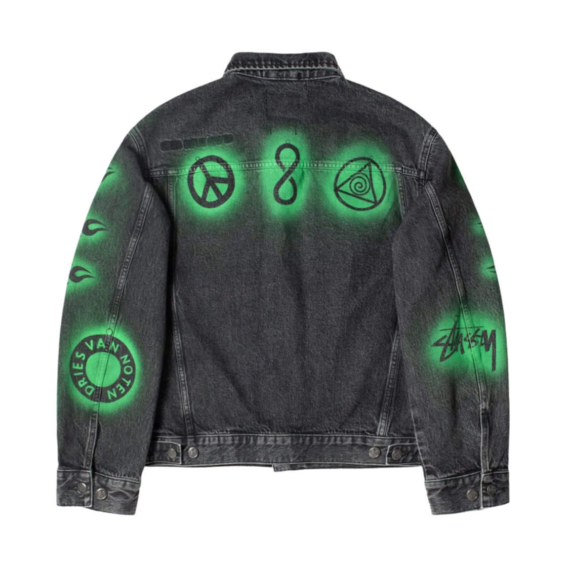 Stussy x Dries Van Noten Hand Stencilled Denim Jacket Washed Black