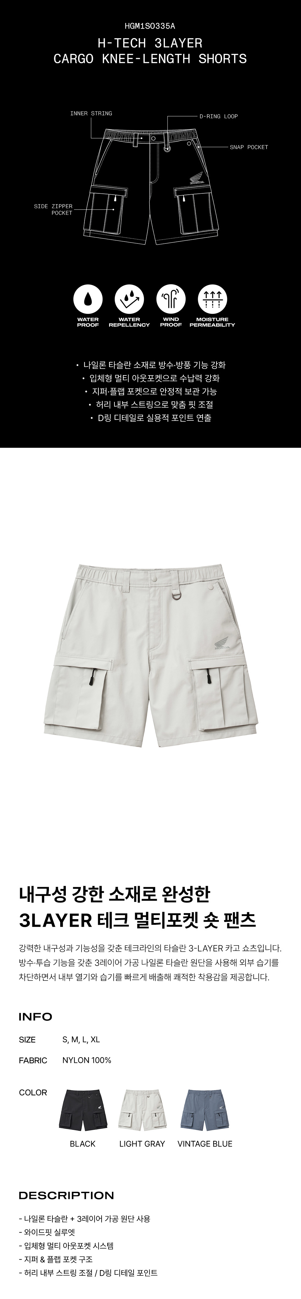 [예약 배송] Honda H-Tech 3Layer Cargo Knee-Length Shorts Light Gray
