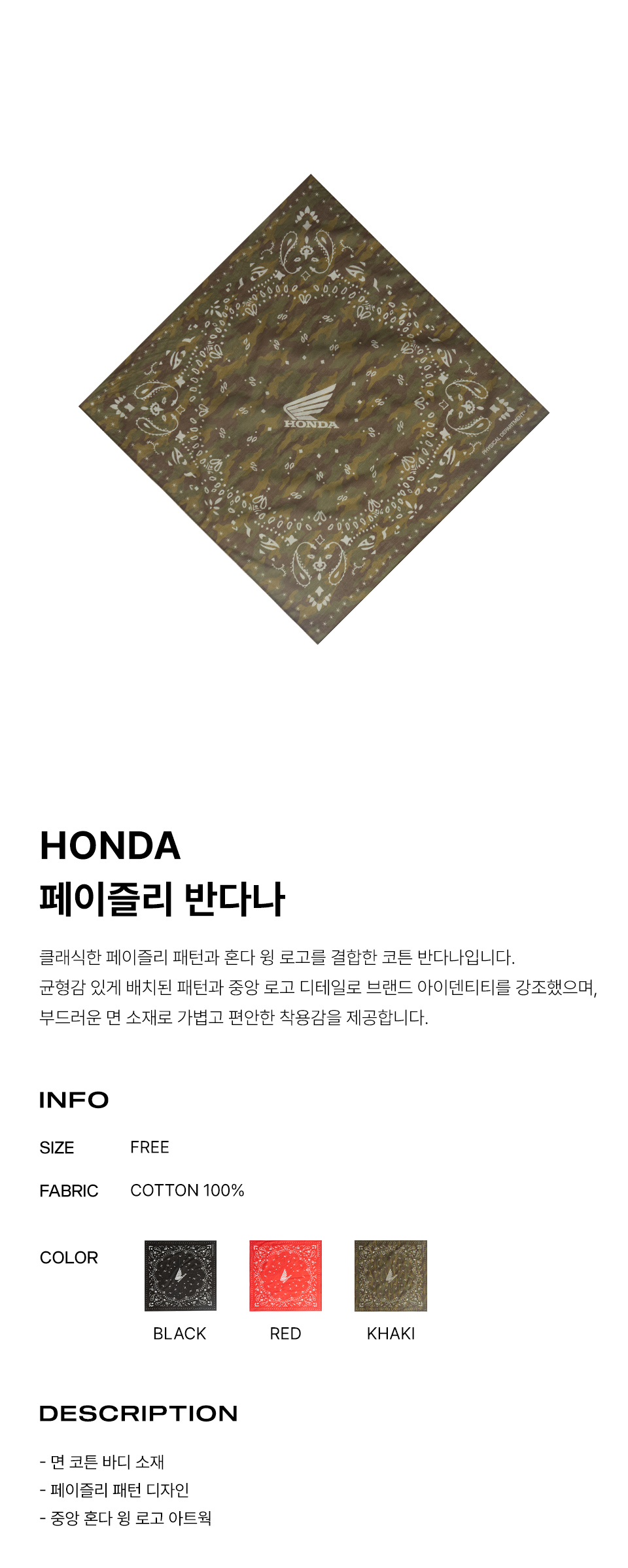 [KREAM 단독] 혼다 윙 로고 반다나 카모