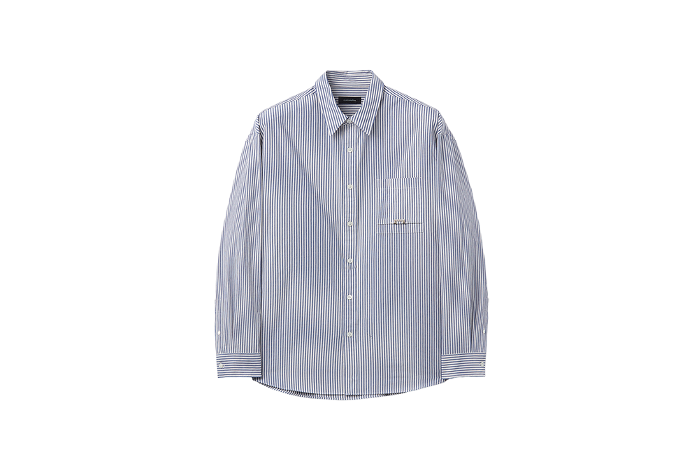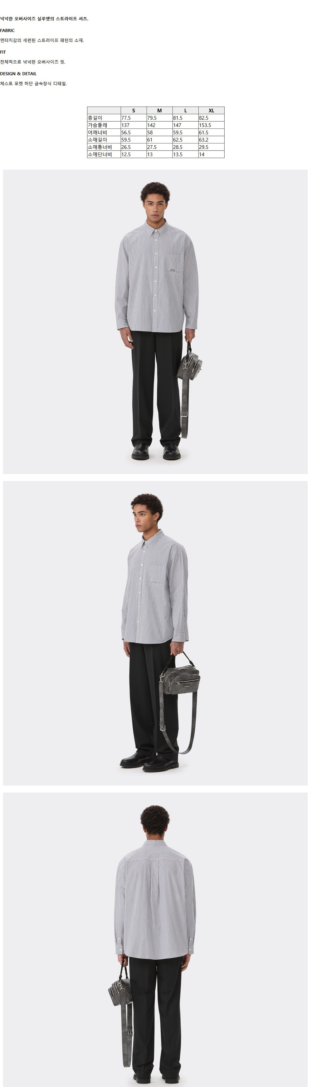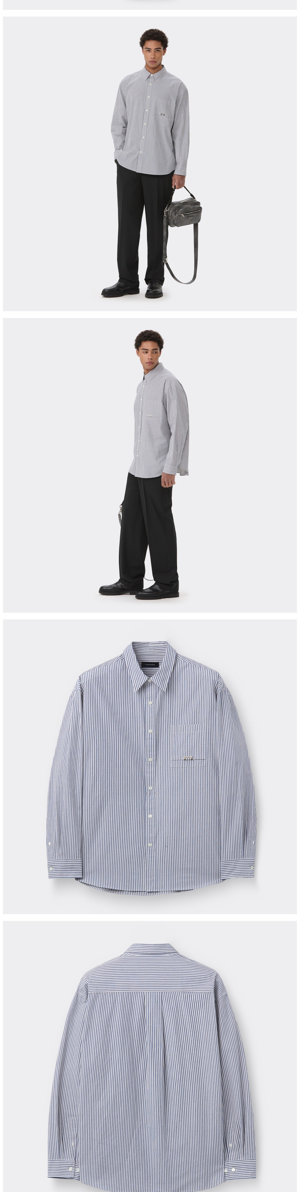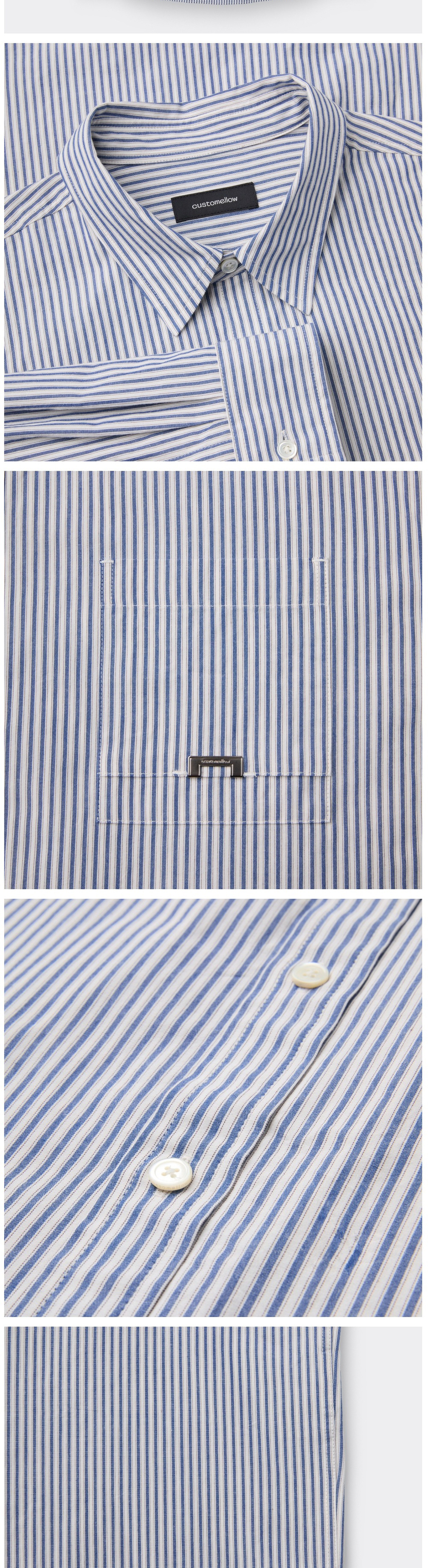 커스텀멜로우 오버사이즈 스트라이프 셔츠 블루
