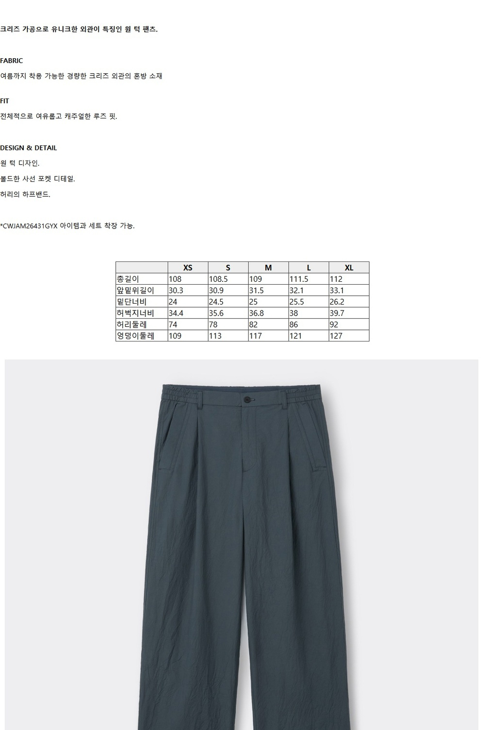 커스텀멜로우 루즈핏 턱 크리즈드 팬츠 그레이