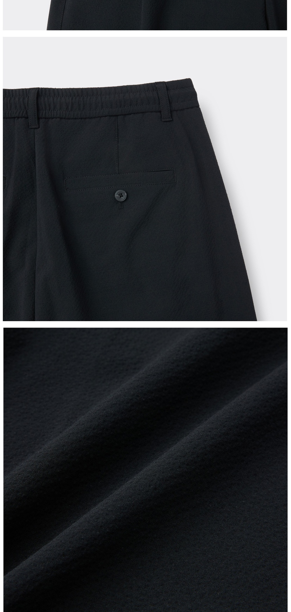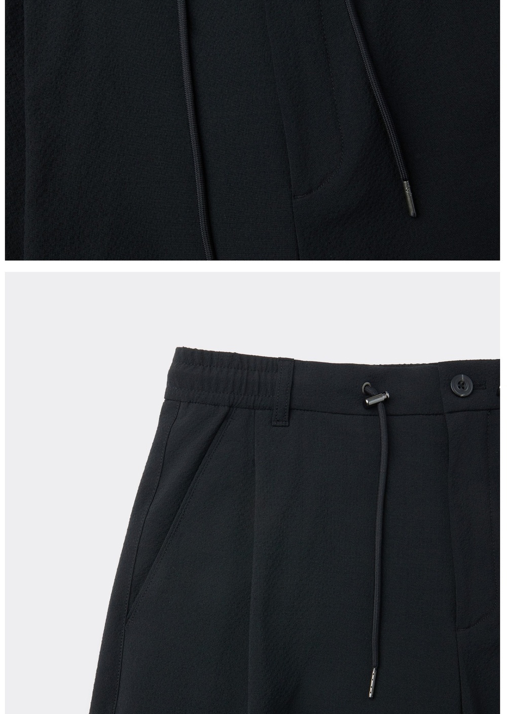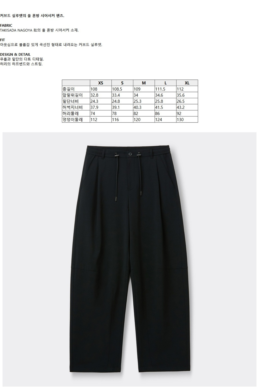 커스텀멜로우 커브드 드로스트링 시어서커 팬츠 블랙