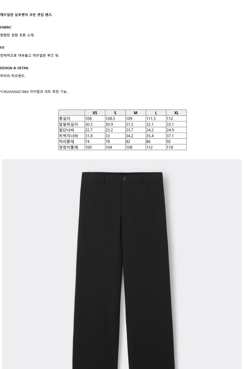 커스텀멜로우 루즈핏 코튼 셋업 팬츠 블랙