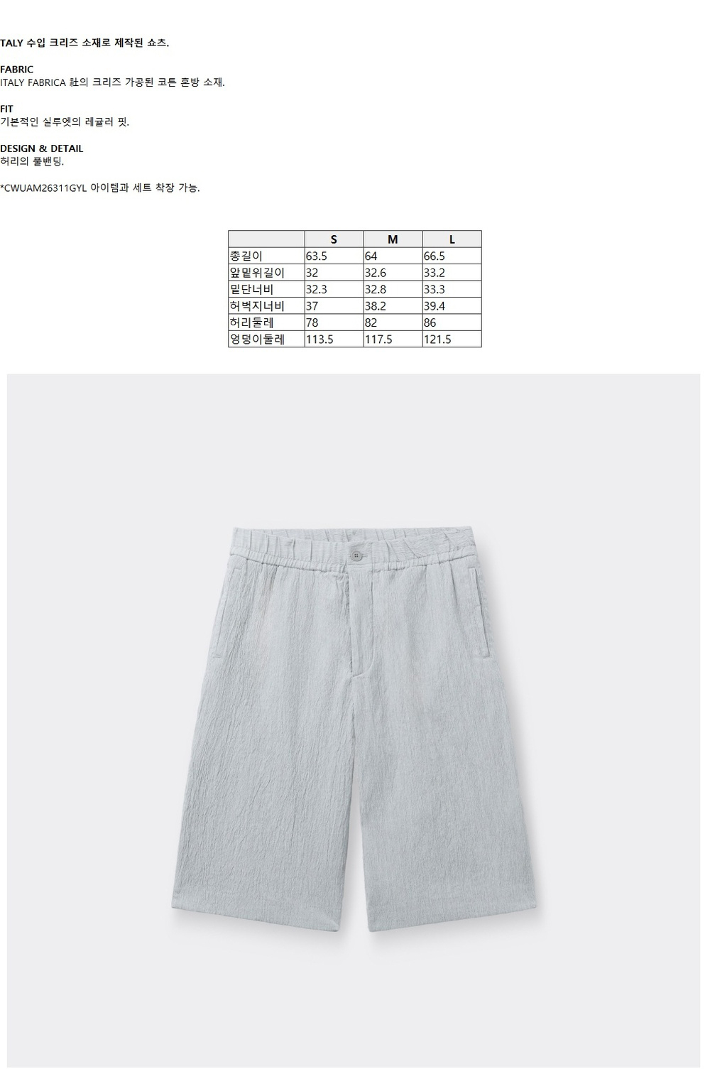 커스텀멜로우 크리즈드 드로스트링 쇼츠 라이트 그레이
