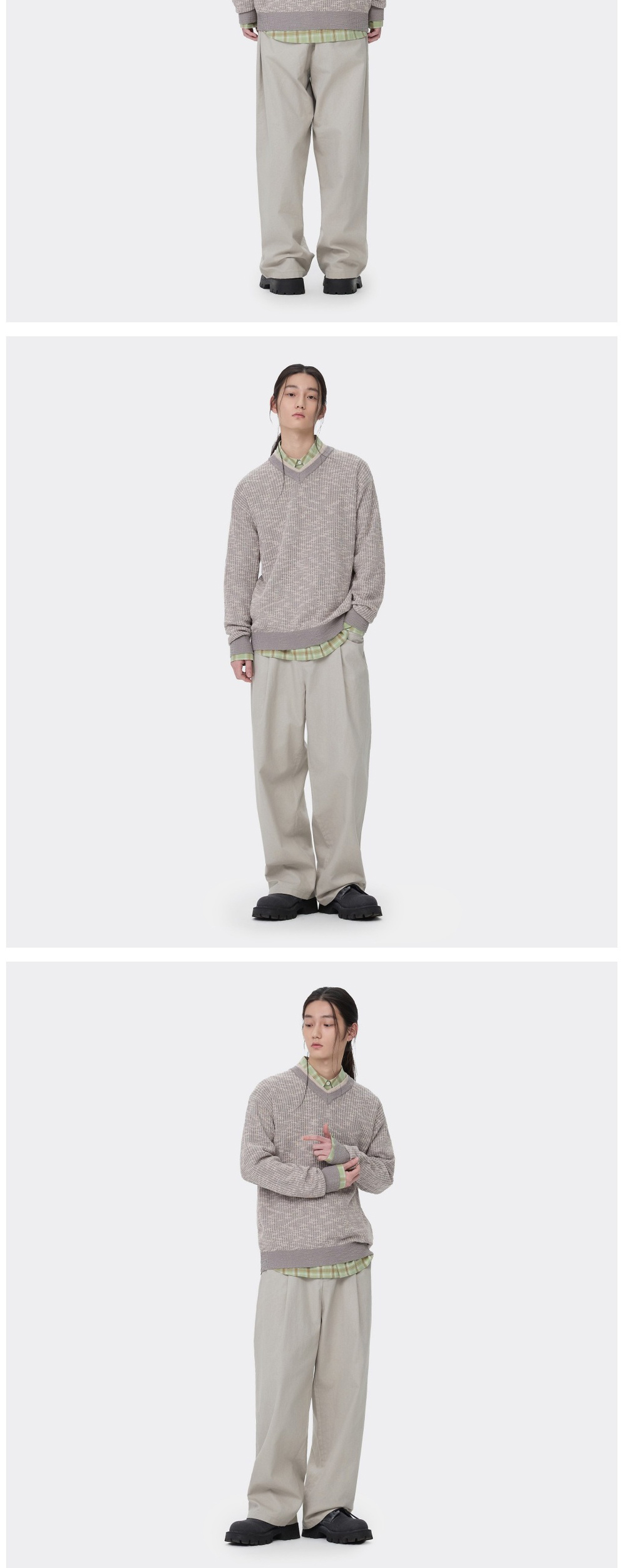 커스텀멜로우 브이넥 레이어드 스웨터 베이지