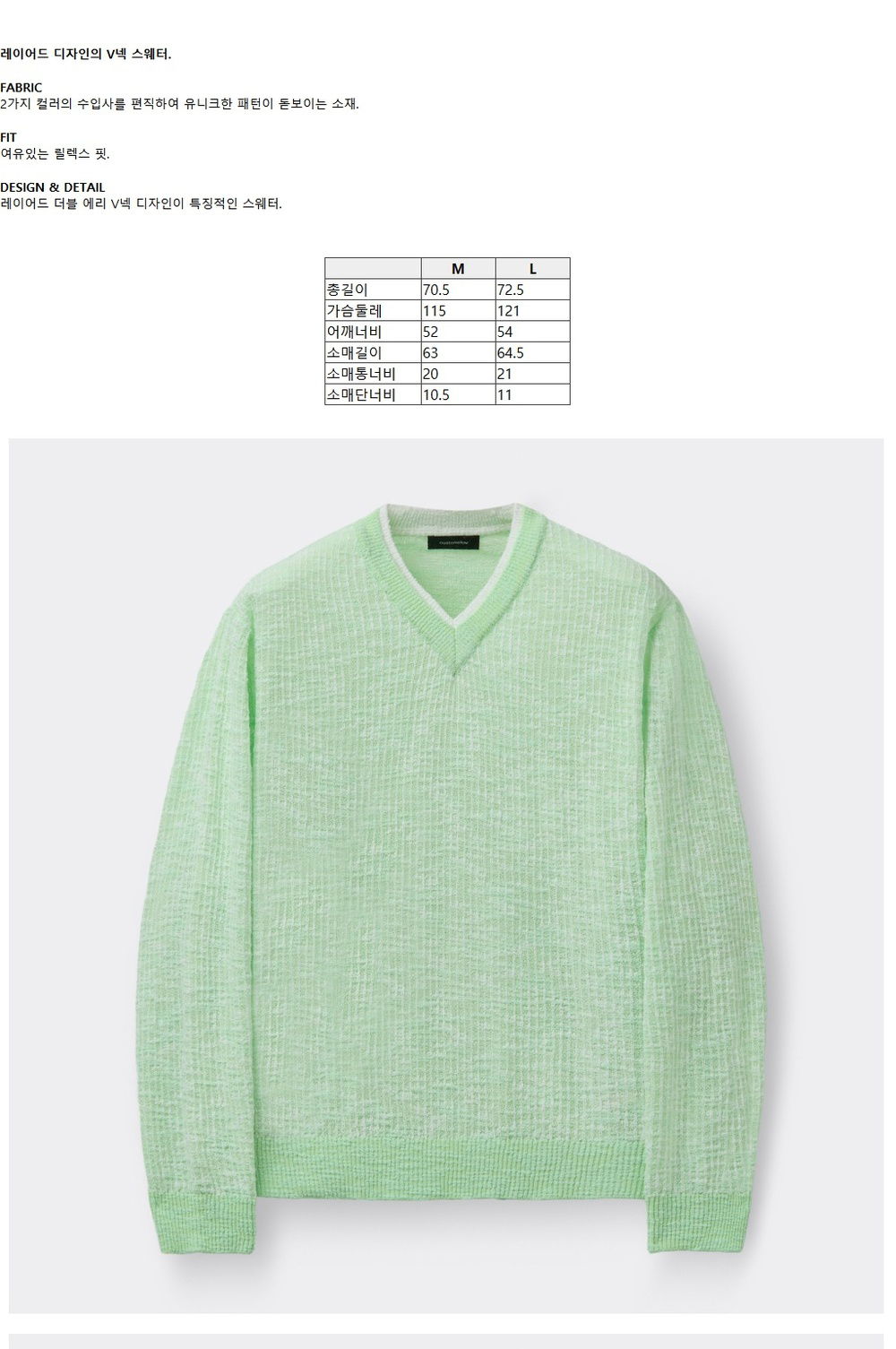커스텀멜로우 브이넥 레이어드 스웨터 그린