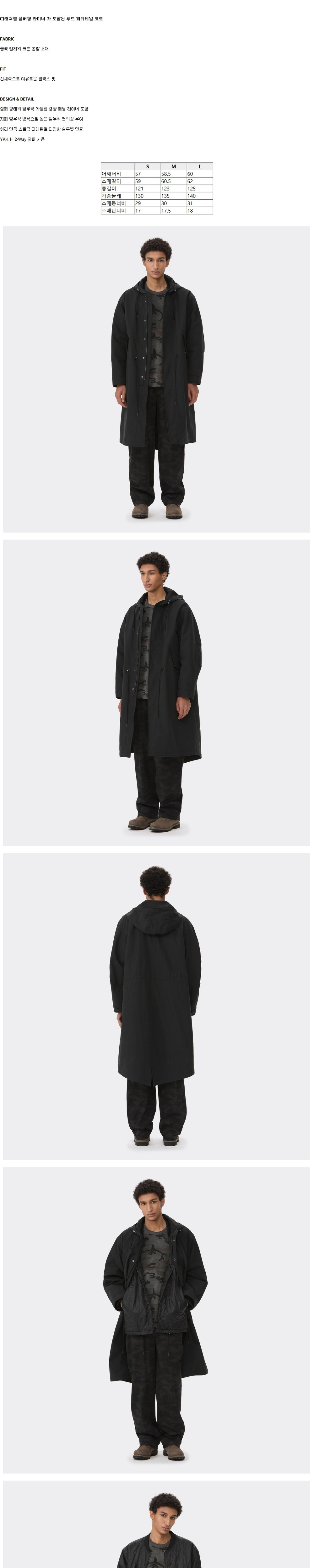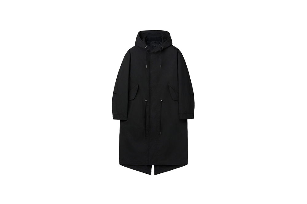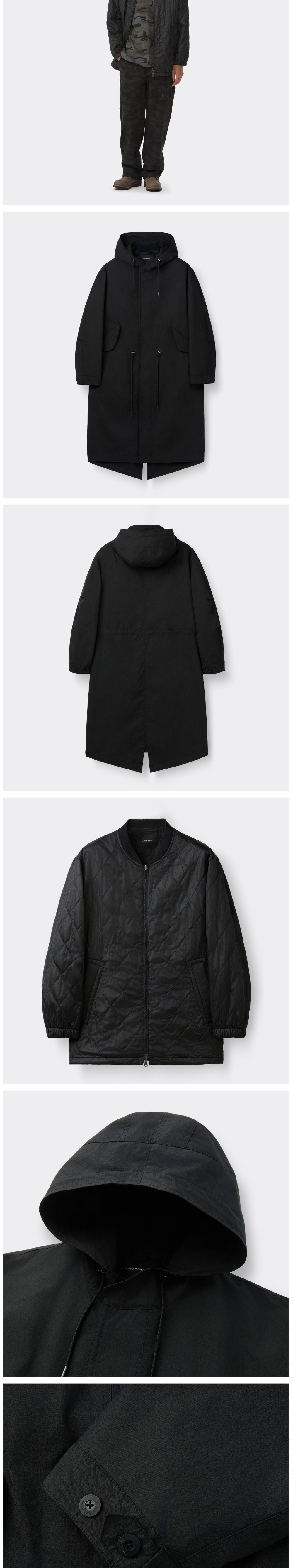 커스텀멜로우 탈부착 피쉬테일 후드 코트 블랙