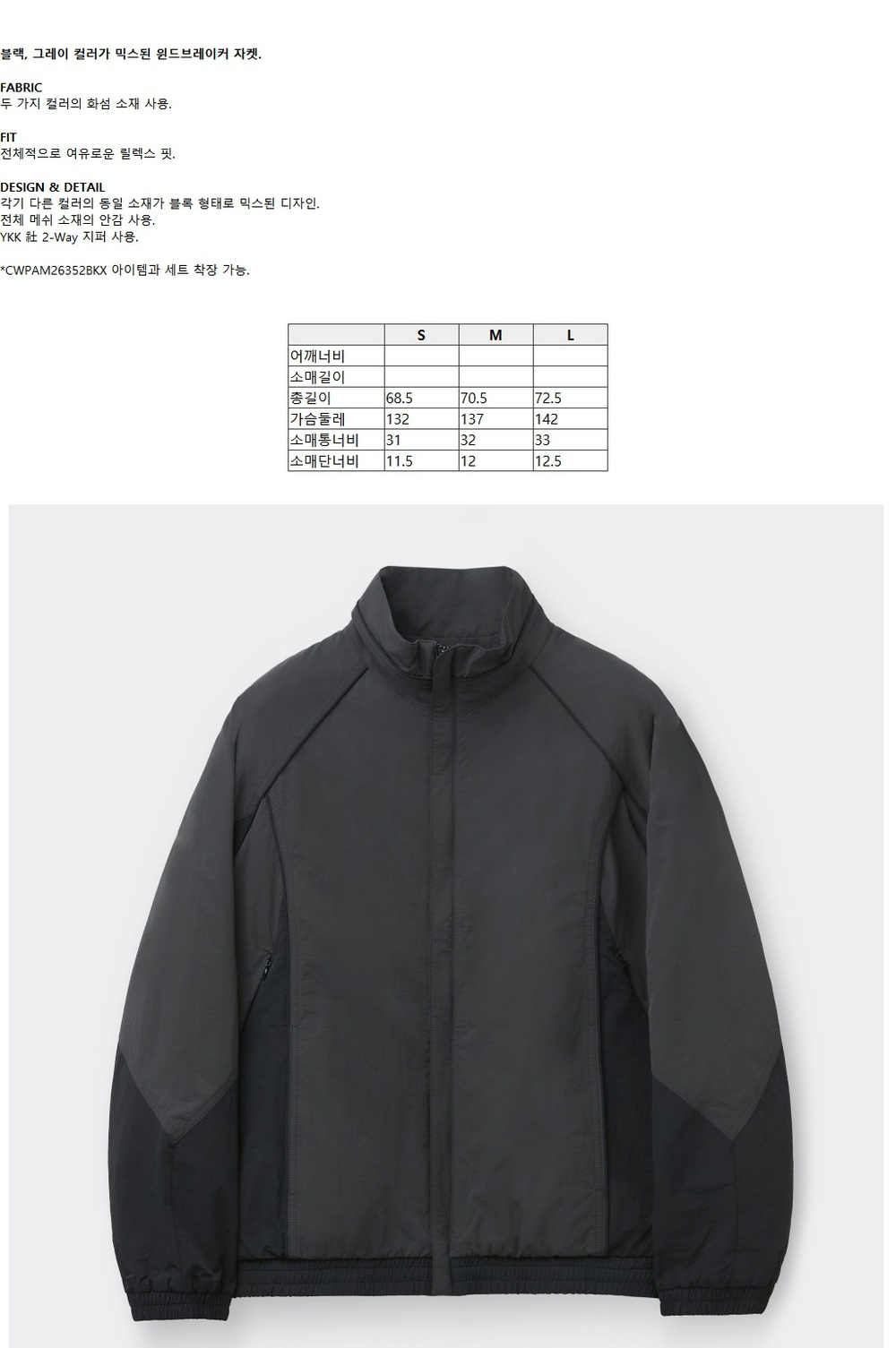 커스텀멜로우 블록 윈드브레이커 블랙