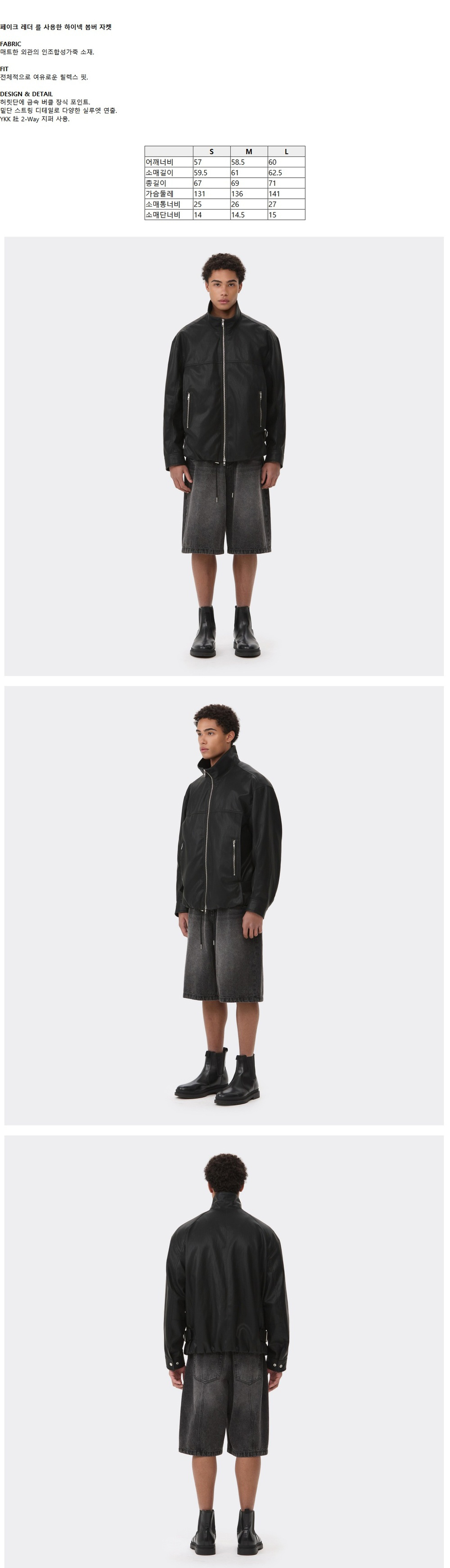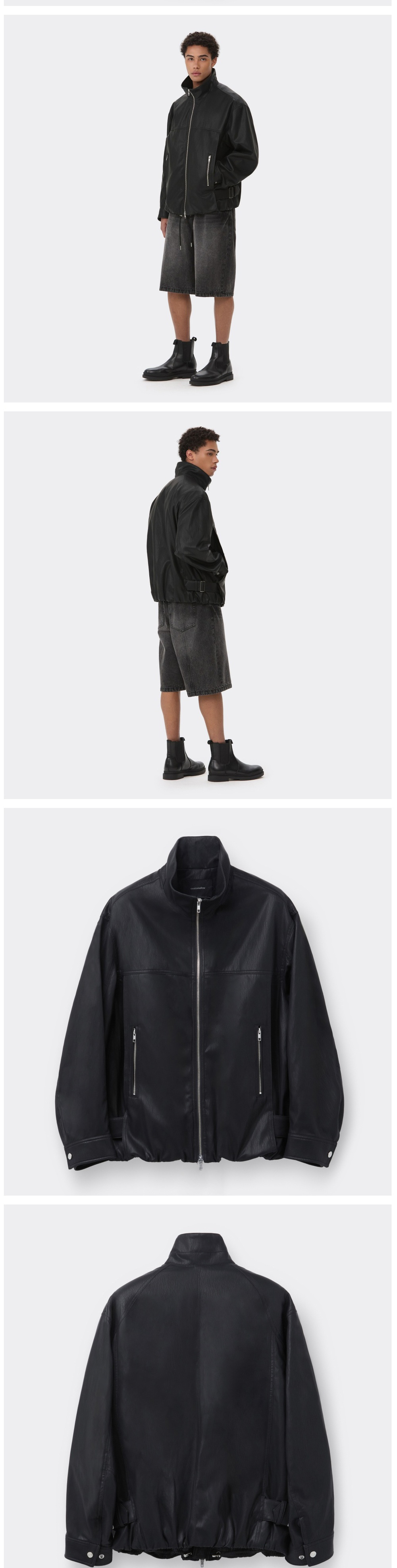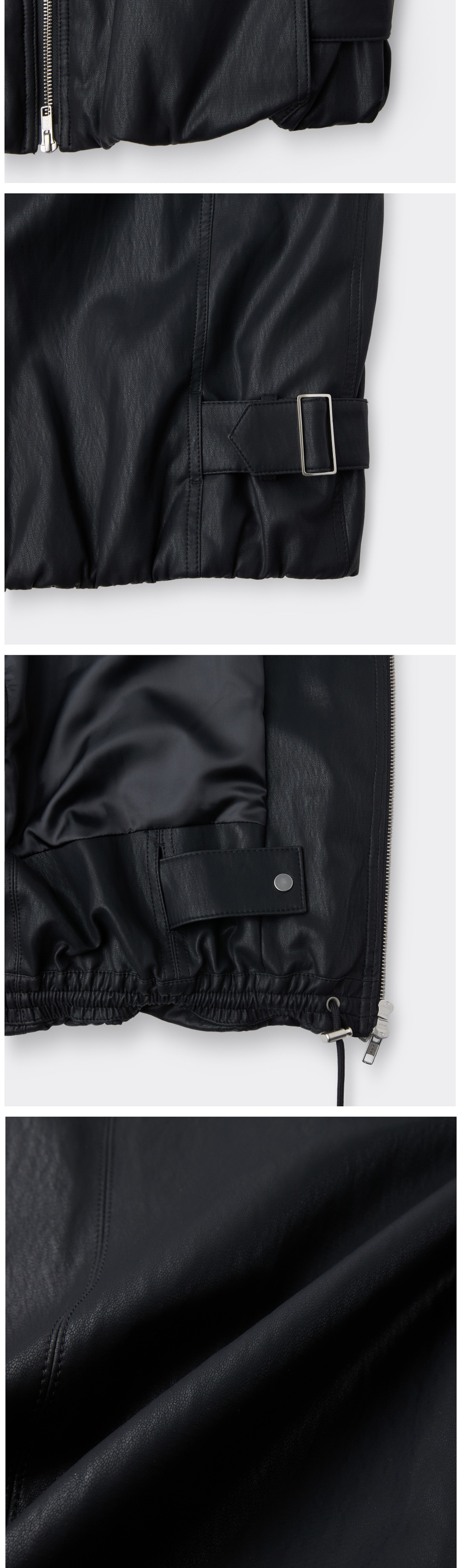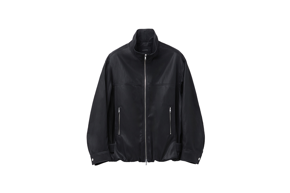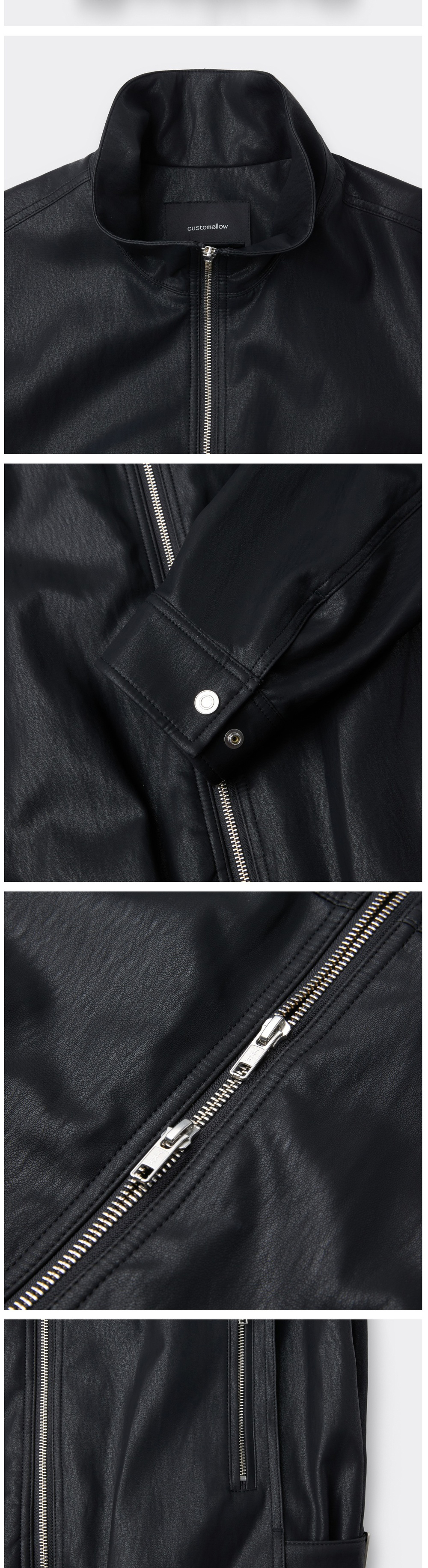 커스텀멜로우 페이크 레더 하이넥 자켓 블랙
