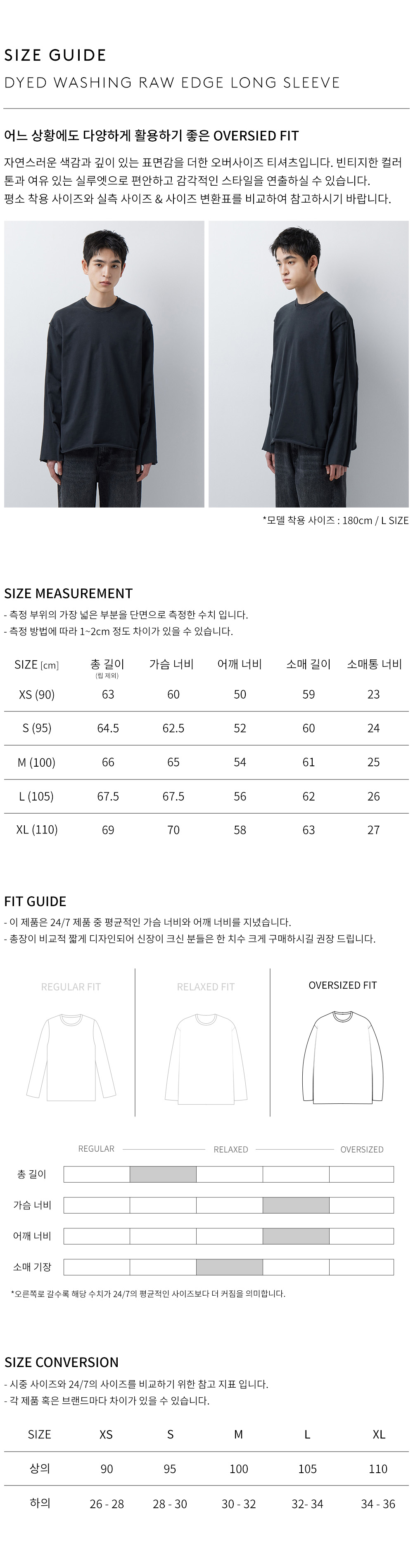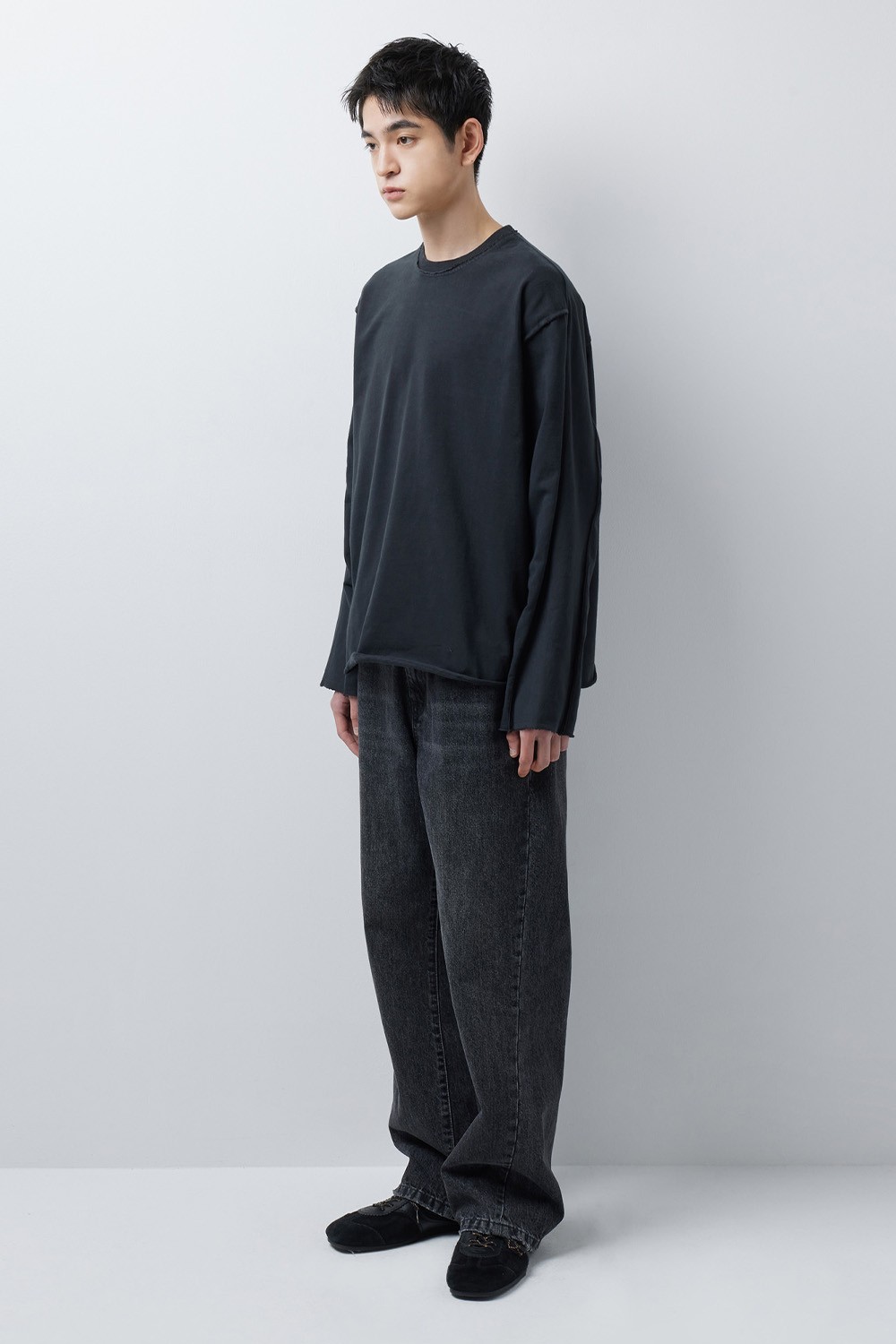 24/7 시리즈 다이드 워싱 로우 엣지 롱슬리브 티셔츠 차콜