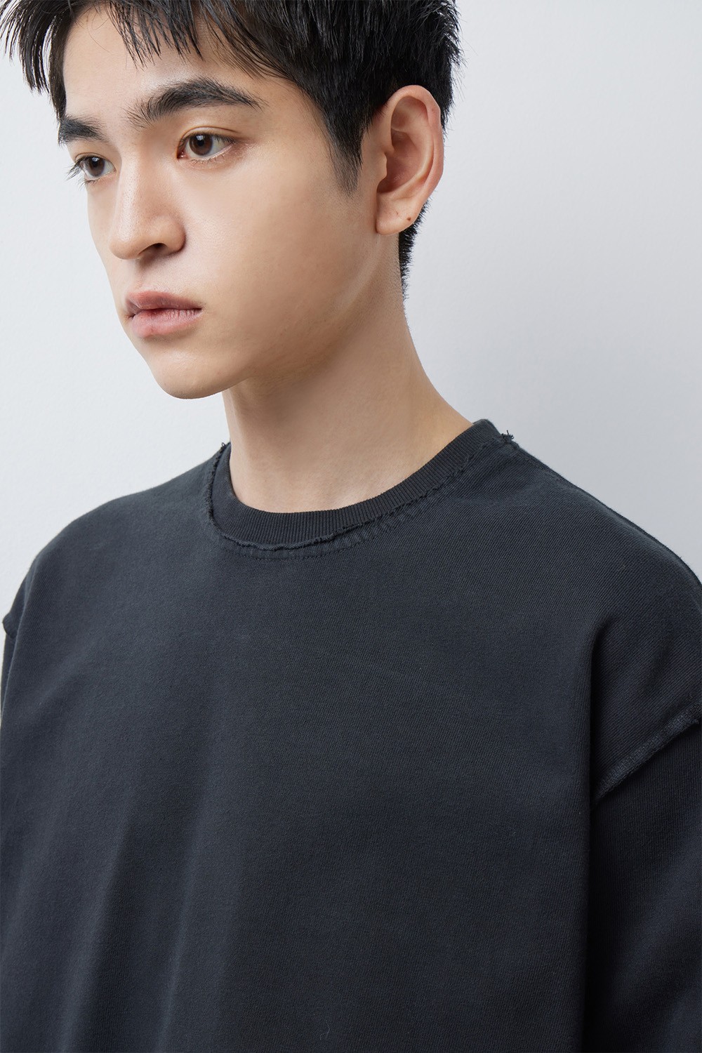 24/7 series Dyed Raw Edge Long Sleeve Charcoal
