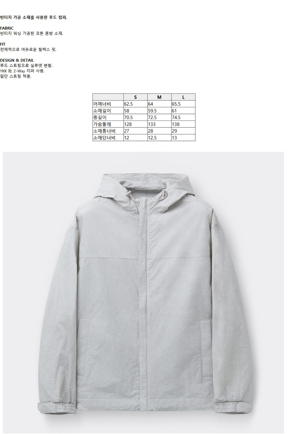 커스텀멜로우 다이드 패브릭 후드 자켓 라이트 그레이