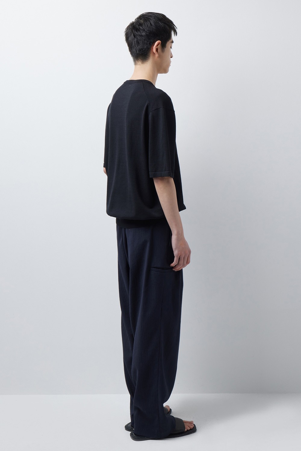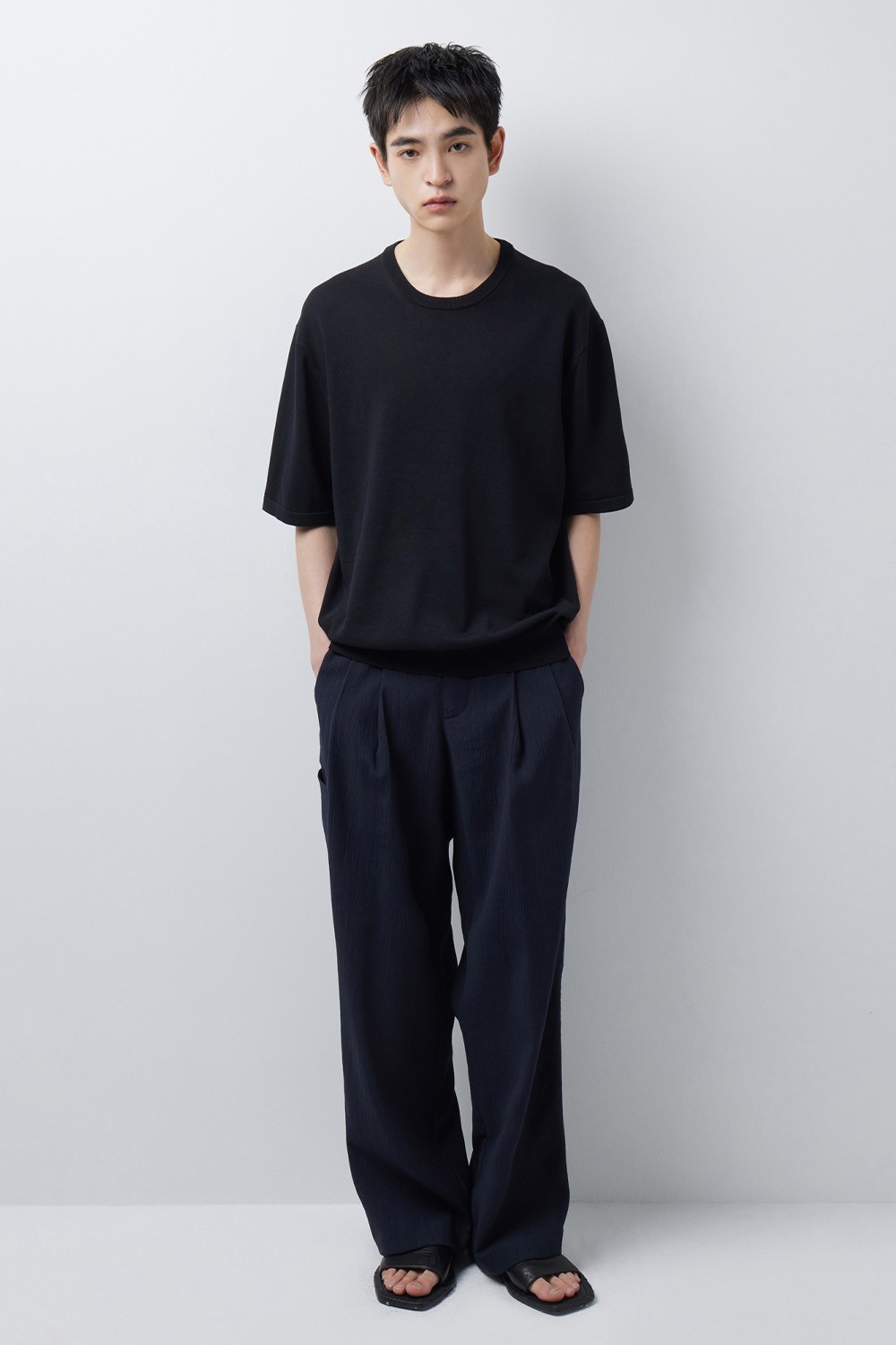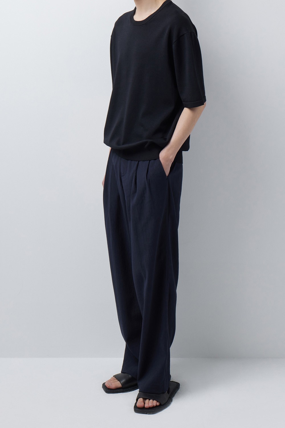 열가소성을 활용한 크리즈 가공을 적용하여 정돈된 이미지와 감각적인 외관을 동시에 느끼실 수 있도록 제작한 와이드 팬츠입니다. 가벼운 소재감으로 한여름까지도 쾌적하게 착용하실 수 있으며, 편안한 실루엣으로 다양한 스타일에 유연하게 활용하실 수 있습니다. FABRIC & INFORMATION o CREASE HEATED MONO FILAMENT YARN o RAYON 34% / POLYESTER 41% / NYLON 23% / POLYURETHANE 2% o FULL BANDING WAIST o DRAW STRING ADJUSTMENT o TWO-TUCK FRONT