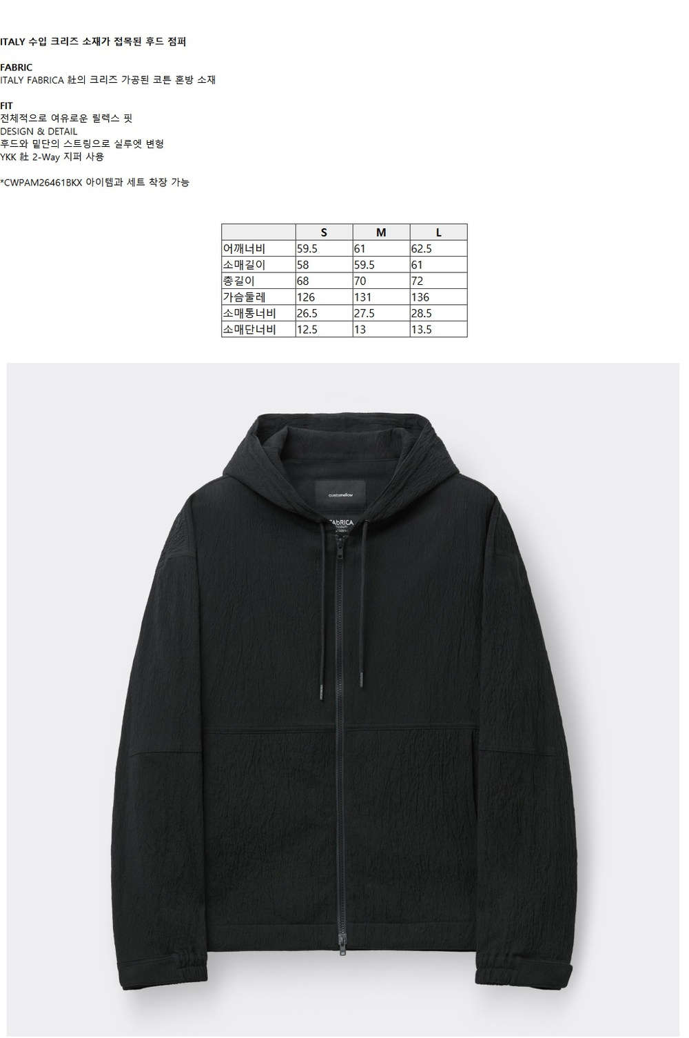 커스텀멜로우 크리즈드 후드 블루종 블랙