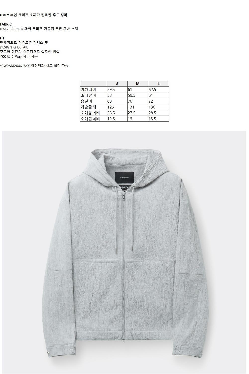 커스텀멜로우 크리즈드 후드 블루종 라이트 그레이