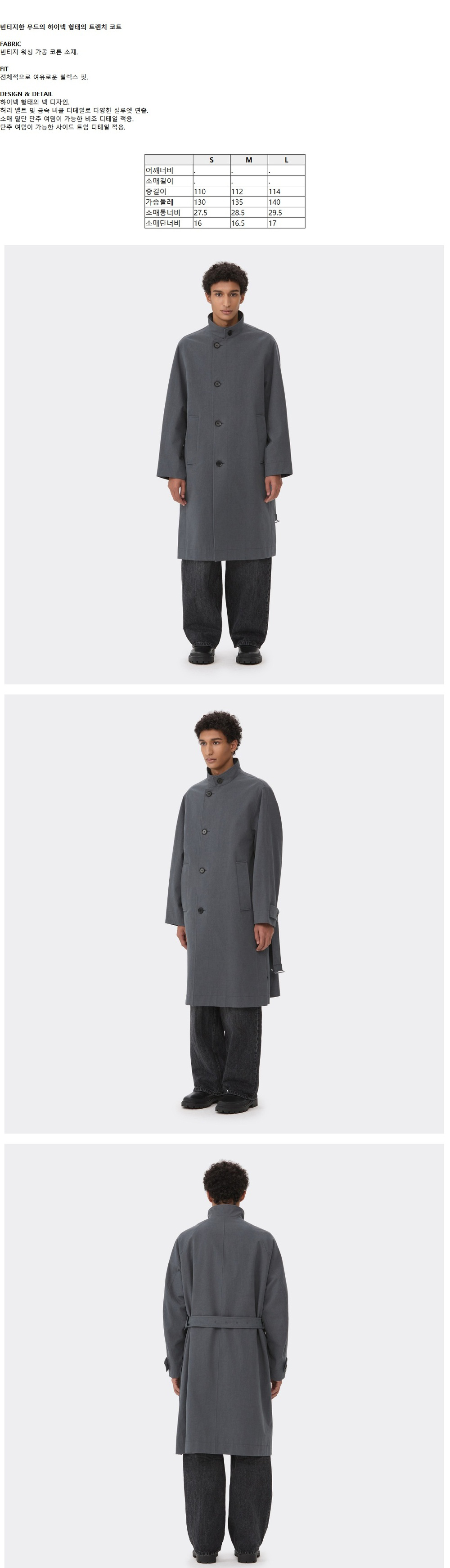 커스텀멜로우 하이넥 트렌치 코트 그레이