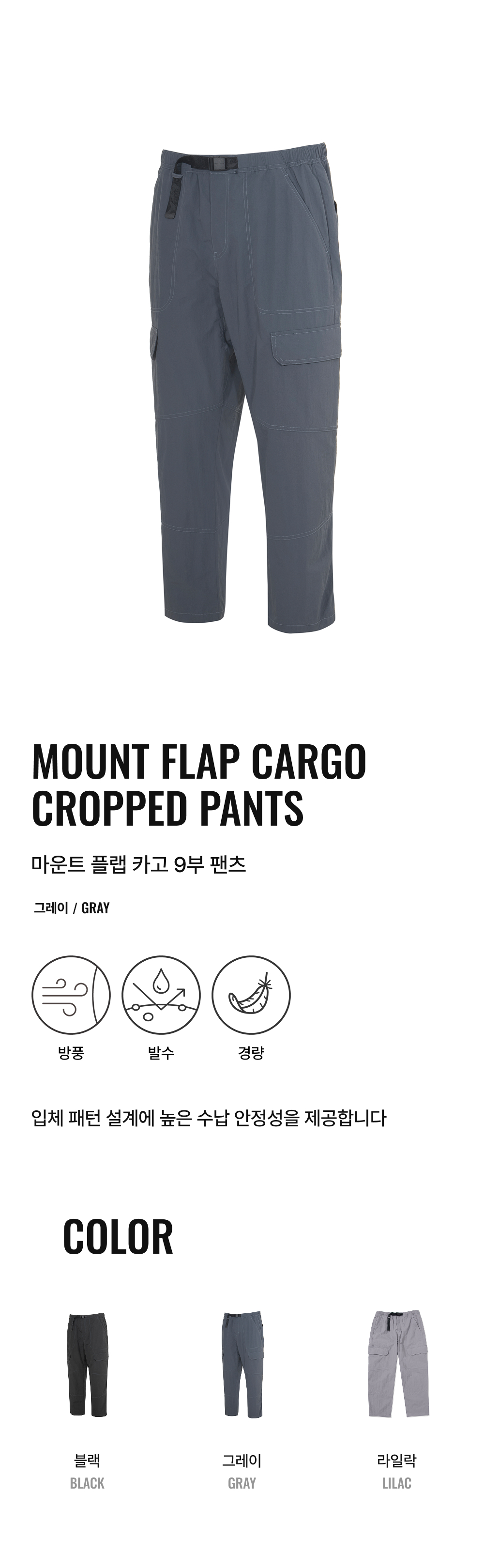 제로그램 마운트 플랩 카고 9부 팬츠 그레이