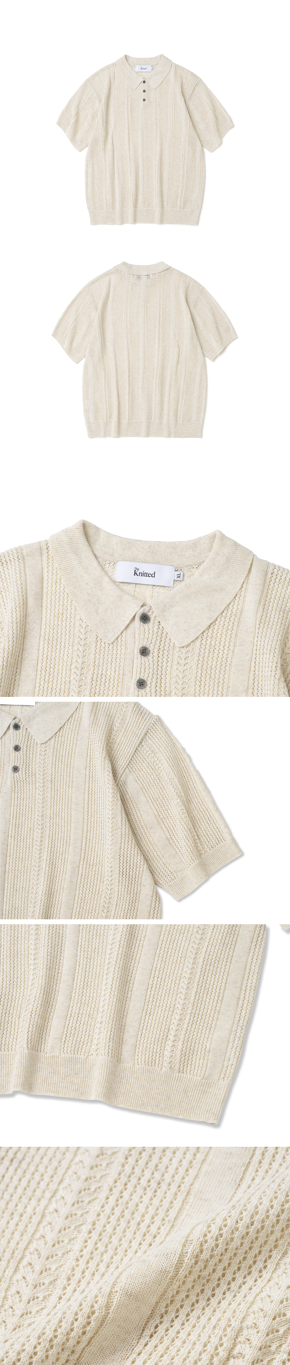 니티드 린넨 스카시 카라 반팔 니트 린넨