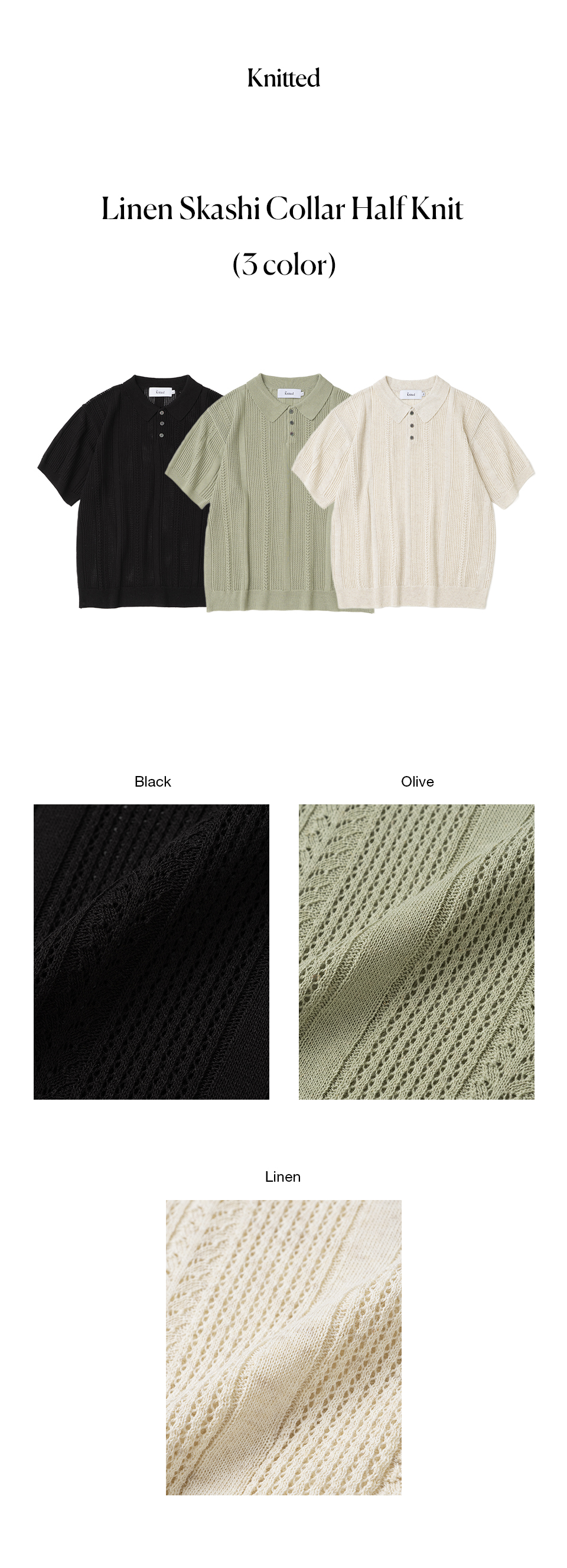 Knitted Linen Skashi Collar Half Knit OLIVE