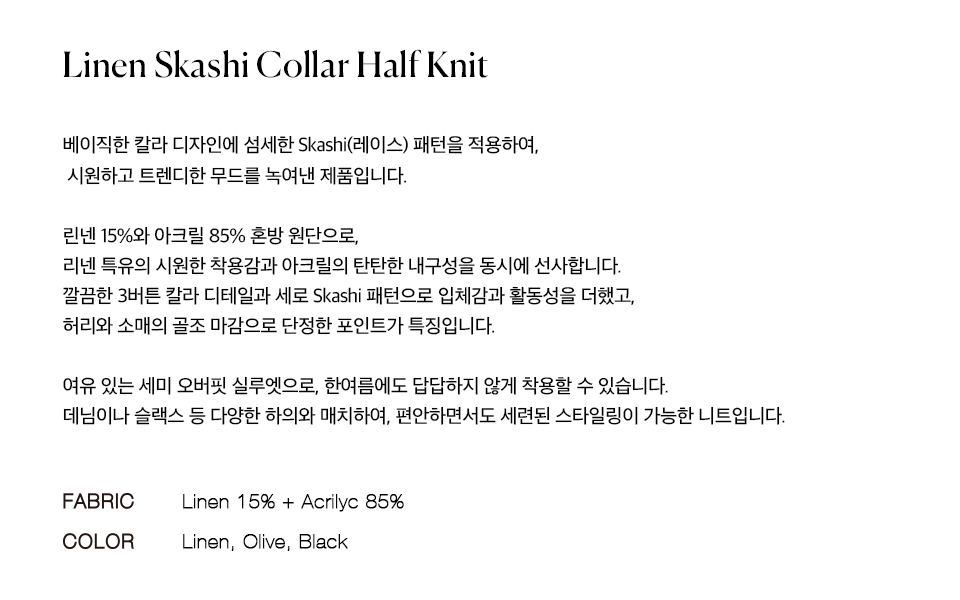 니티드 린넨 스카시 카라 반팔 니트 블랙