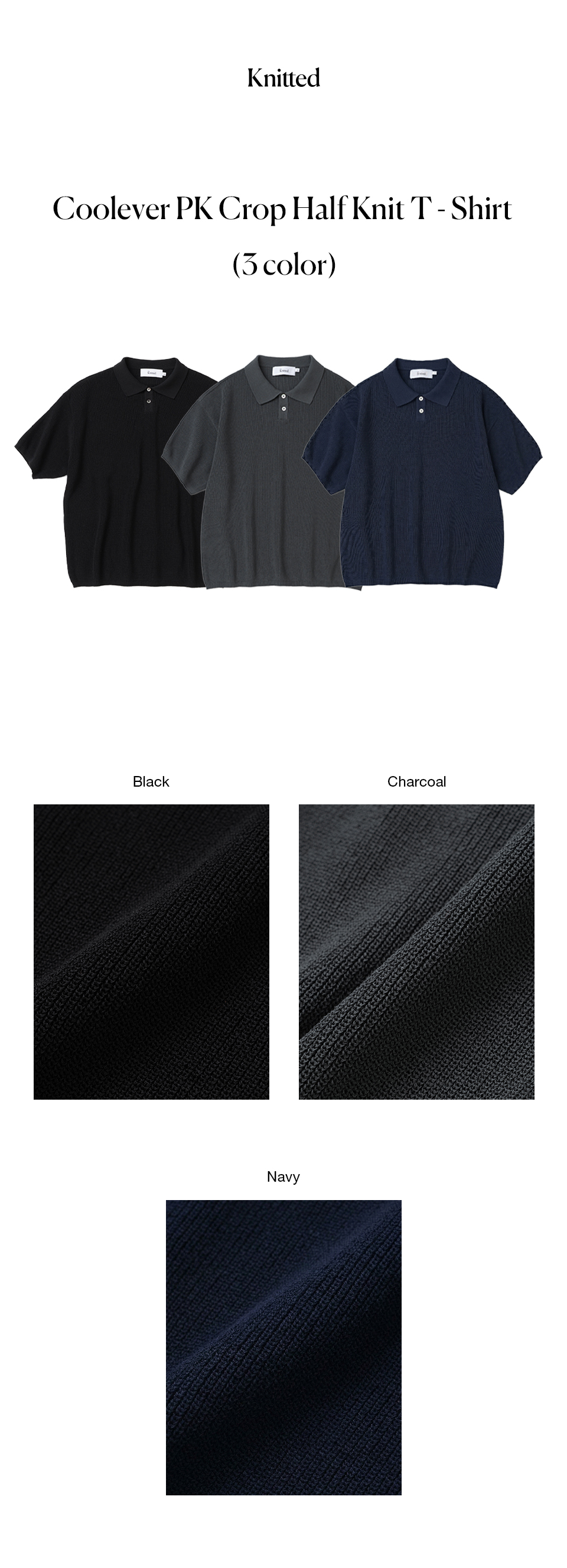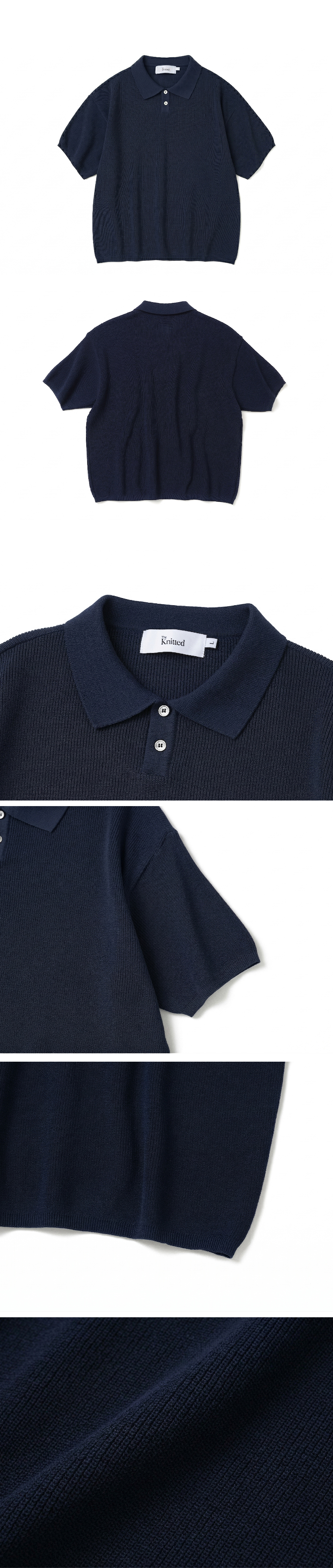 니티드 쿨에버 PK 크롭 반팔 니트티 네이비