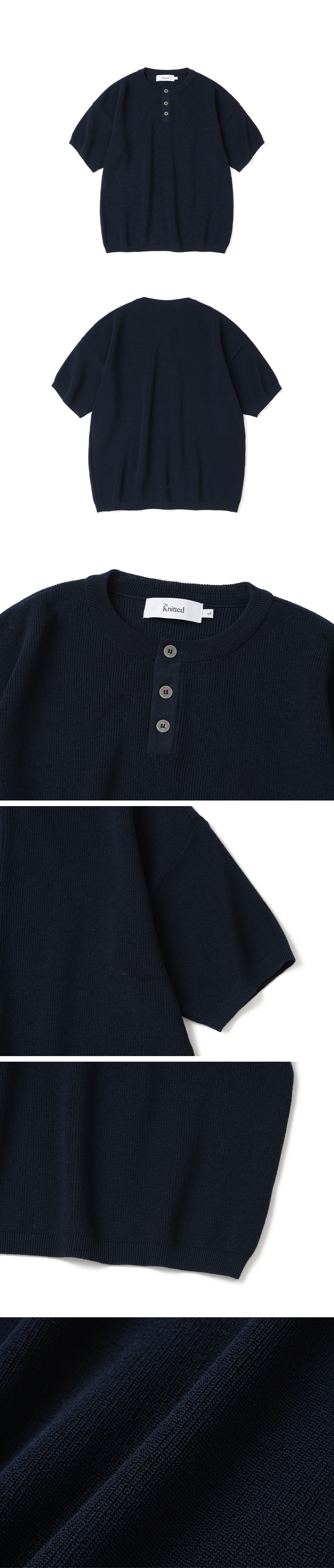 니티드 쿨에버 헨리넥 반팔 니트 네이비