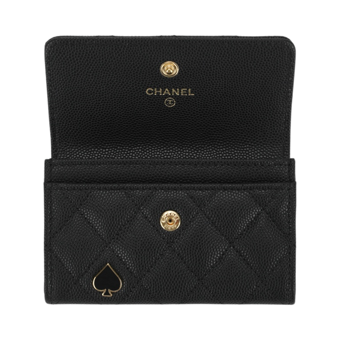 Chanel Flap Card Holder Grained Calfskin Enamel & Gold Black
