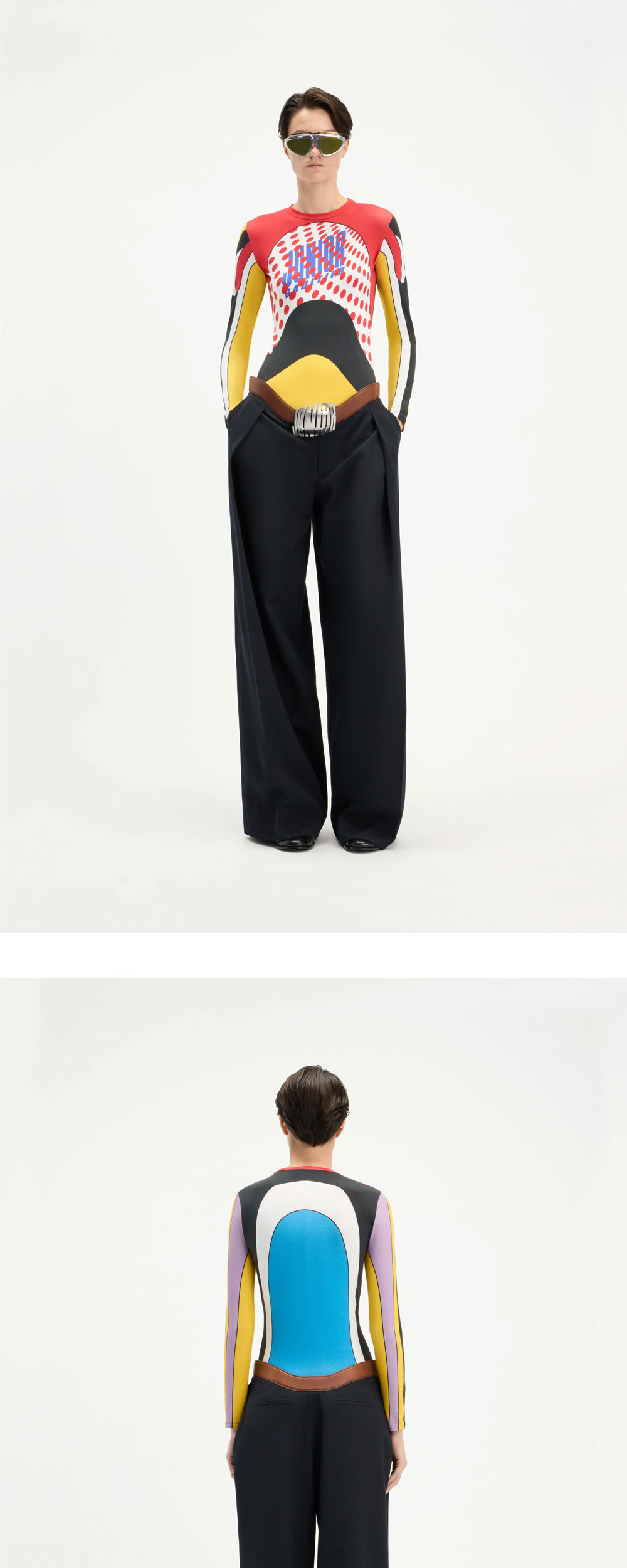 장 폴 고티에 우먼 스트레치 코튼 롱 슬리브 탑 프린티드 "바디 맵" 위드 로고 앤 도츠 멀티컬러입니다. - 강렬한 멀티 컬러의 '바디 맵' 프린트와 Junior 로고 디테일 - 바디 라인에 밀착되어 실루엣을 강조하는 타이트 핏 디자인 - 신축성이 뛰어난 비스코스 혼합 소재로 부드러운 착용감 제공 - 유니크한 그래픽과 크루넥 라인이 조화를 이룬 스테이트먼트 아이템