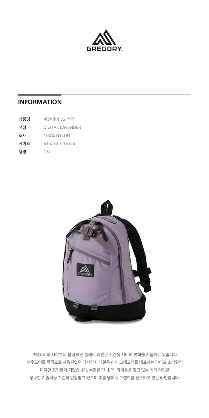 그레고리 파인데이 V2 디지털 라벤더 백팩 18L