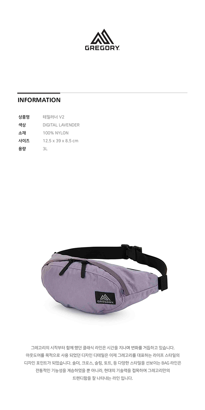 그레고리 테일러너 V2 디지털 라벤더 3L 힙색