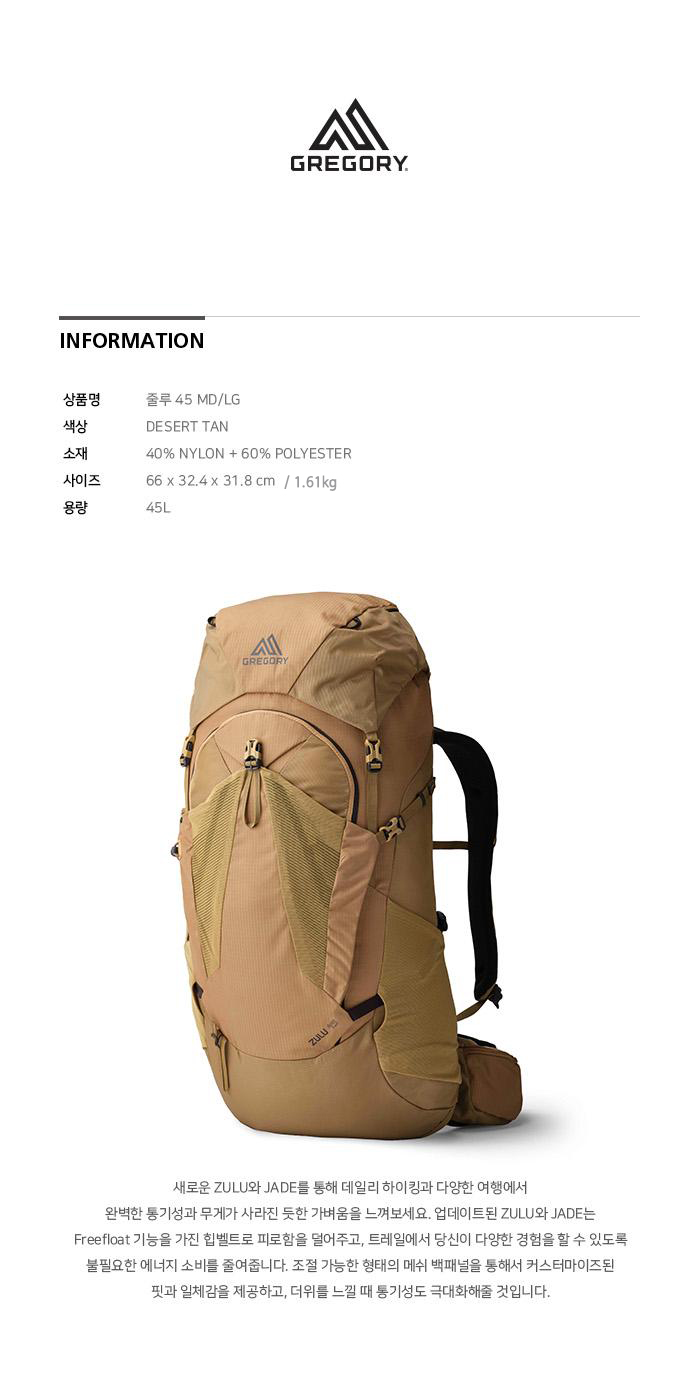 Gregory Zulu45 Md/Lg Desert Tan