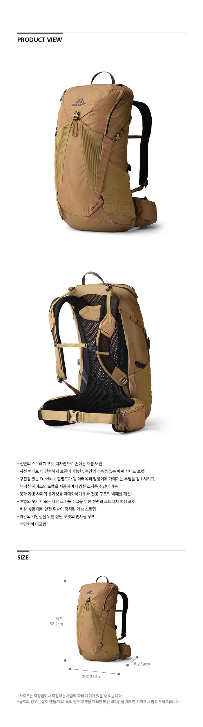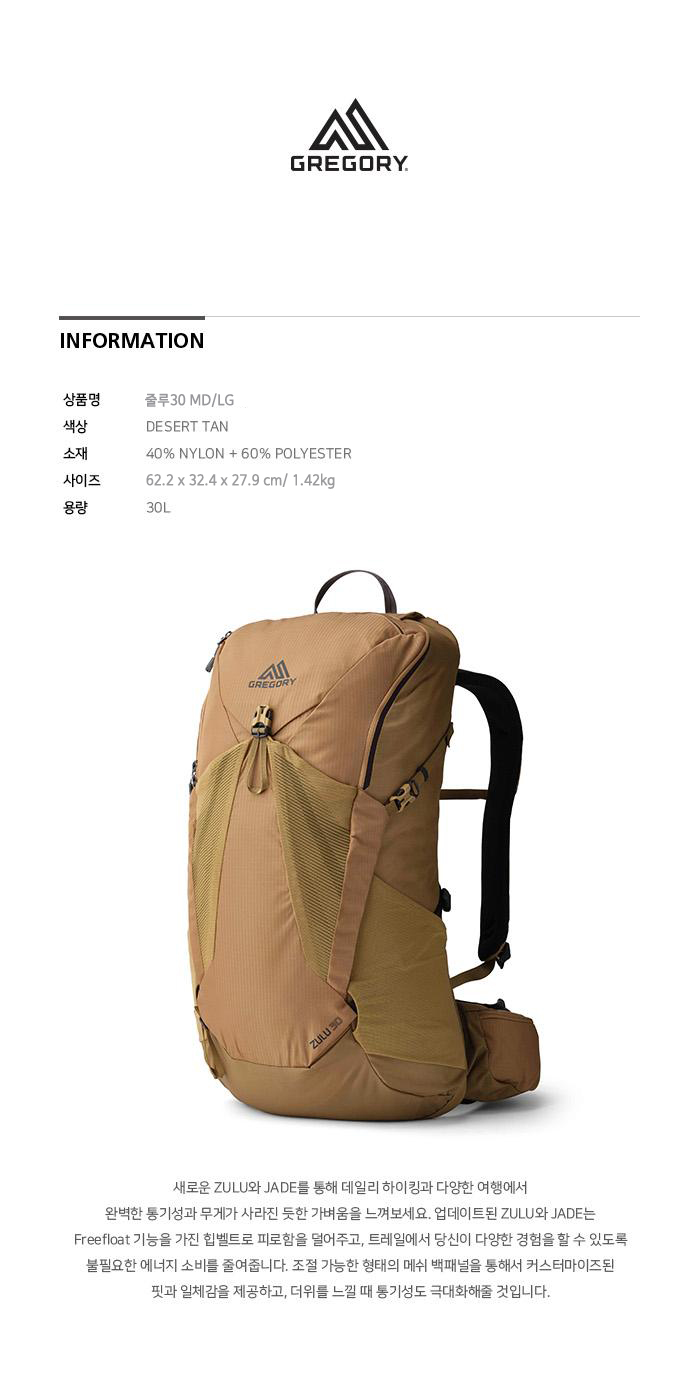 Gregory Zulu30 Md/Lg Desert Tan