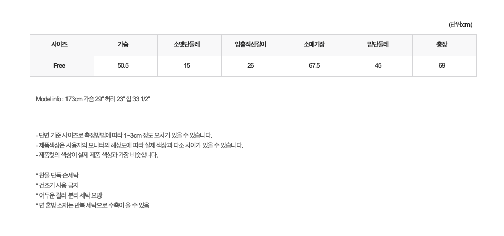 * 손세탁 권장. * 세탁기 사용 시 필히 찬물,세탁망 사용 (올이 풀릴 수 있음.) * 반복된 세탁에 페인팅이 흐려질 수 있음,뒤집어서 세탁 해주세요. * 건조기 사용 금지. * 어두운 컬러 분리 세탁 요망.