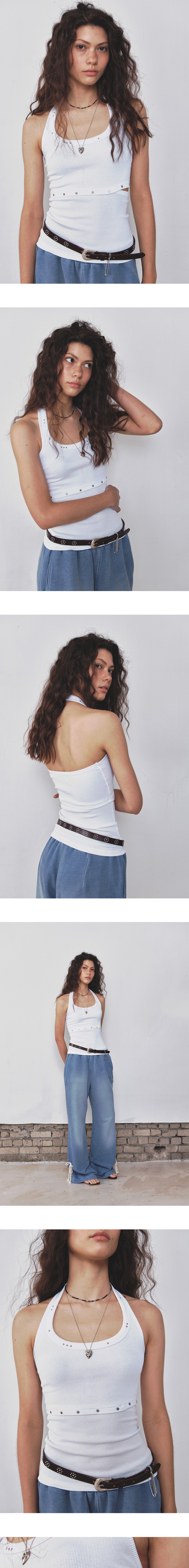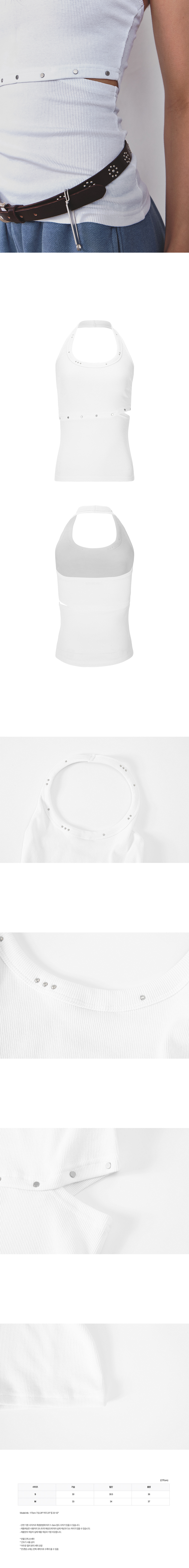 - 탄탄한 프리미엄 면스판골지 원단으로 반복된 세탁에도 변형 최소화. - 빈티지한 스터드 장식. - 과하지 않은 슬릿 디테일. - 뒷판 밴드 내장, 흘러내림 방지.