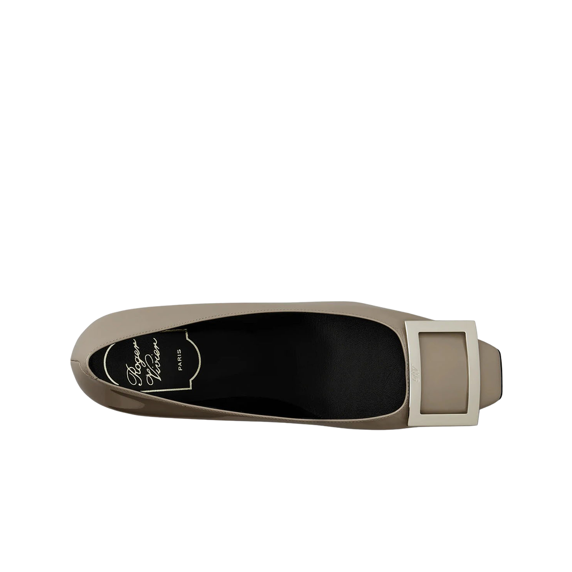 (W) Roger Vivier Trompette Metal Buckle Pumps Patent Leather Beige