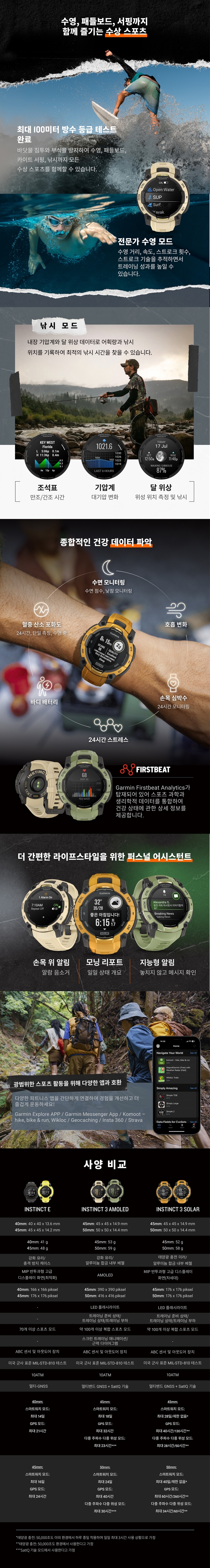 가민 인스팅트 3 50mm 솔라 썬버스트 그레이밴드 멀티스포츠 GPS 스마트워치