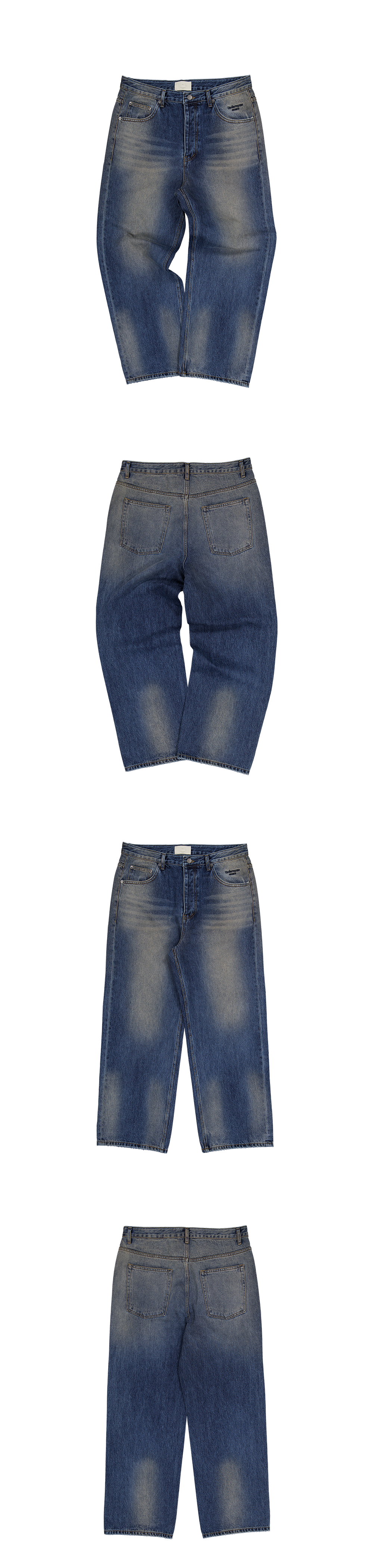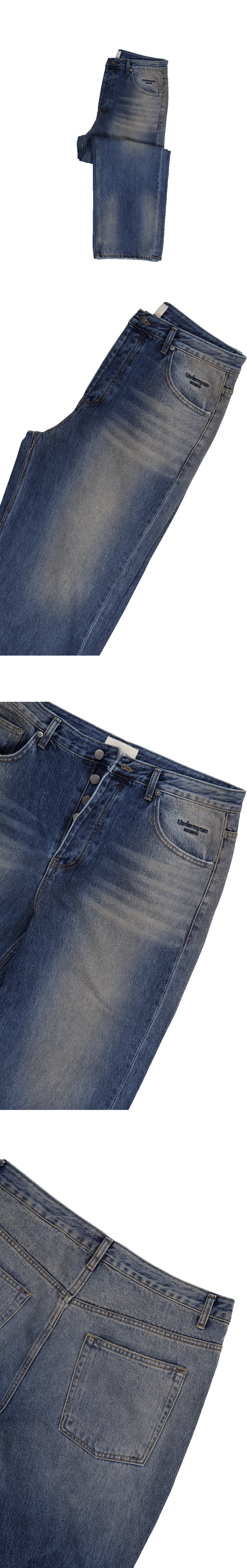 언더마이카 무.174 클래식 로고 브러쉬 워시드 배기 진 워시드 블루