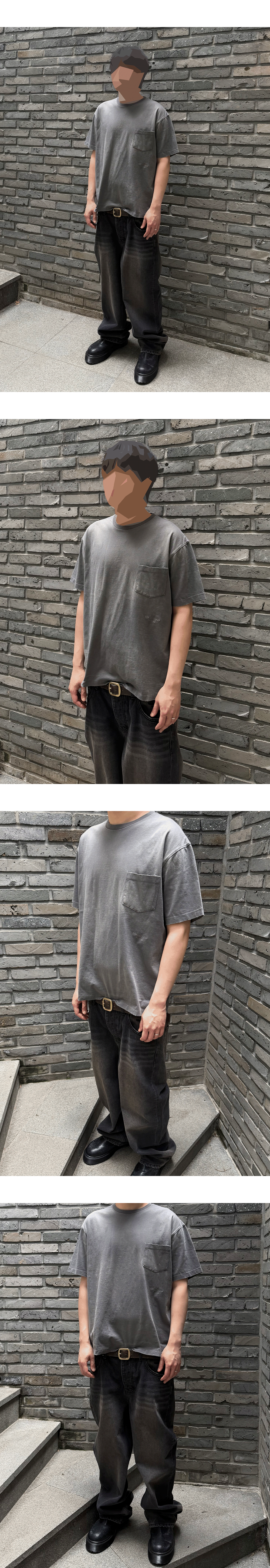 언더마이카 무.166 클래식 로고 워시드 포켓 티셔츠 블랙