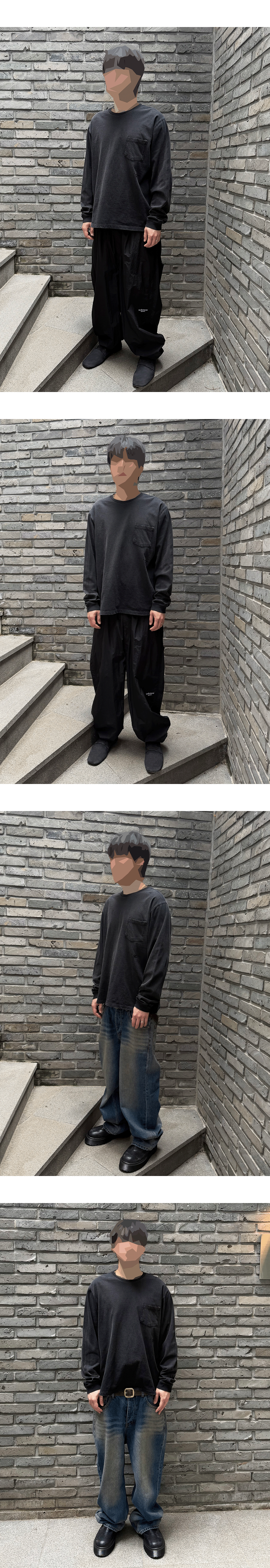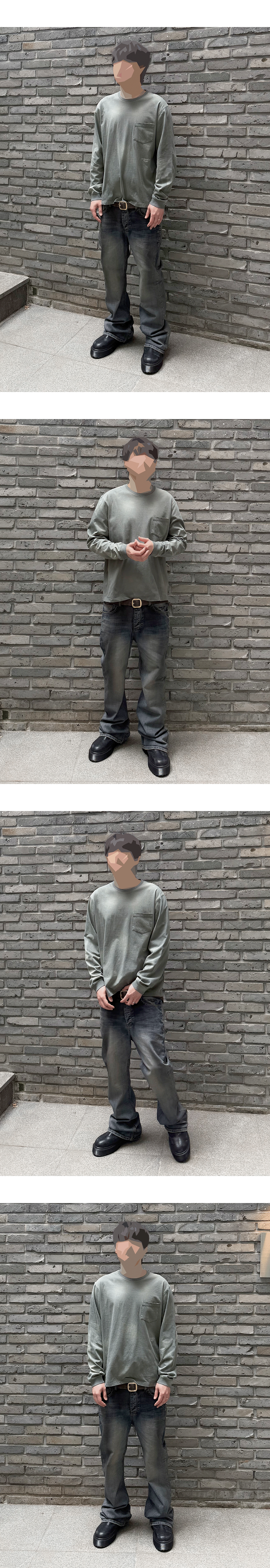 언더마이카 무.165 클래식 로고 워시드 포켓 롱 슬리브 카키