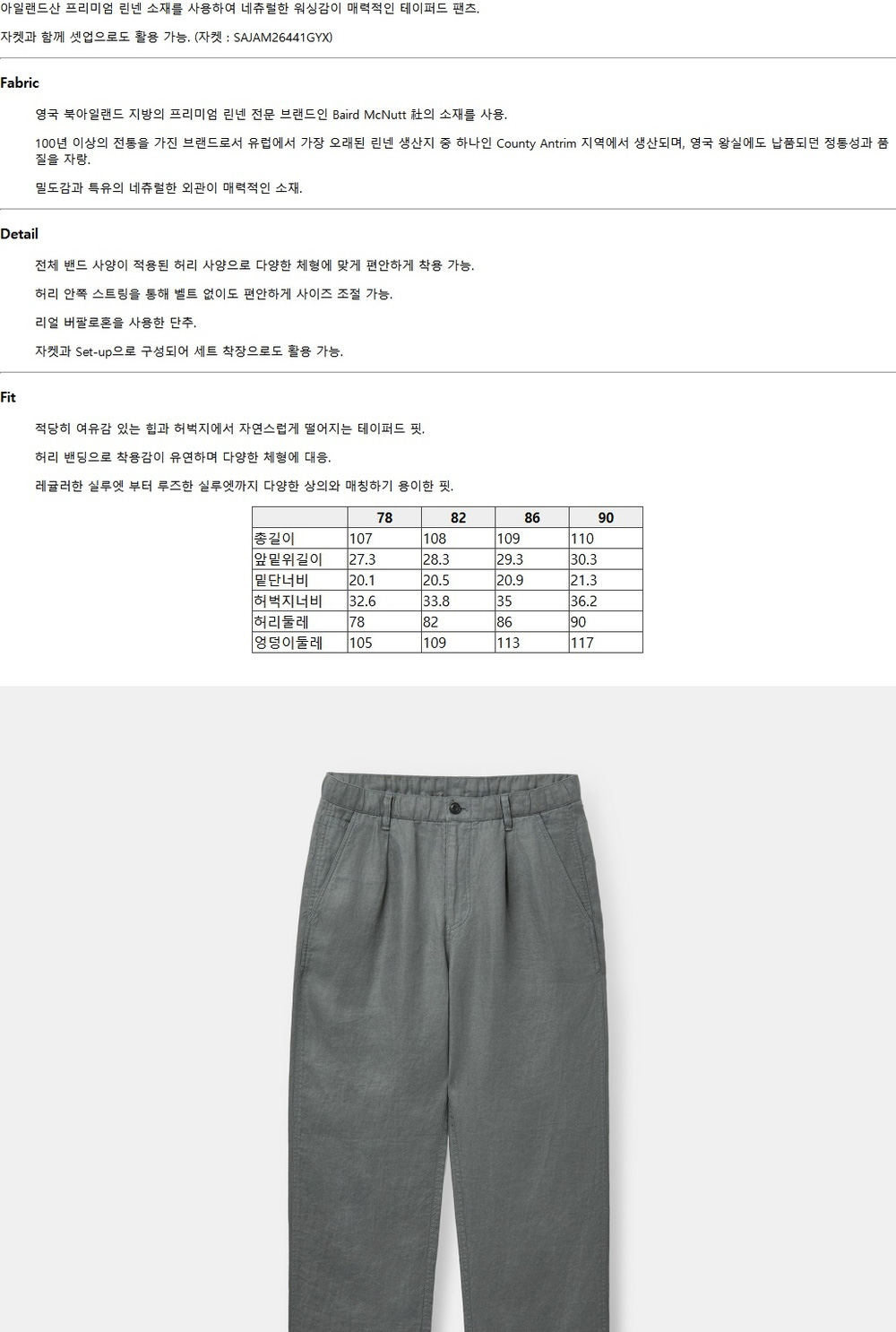 시리즈 셋업 아이리시 린넨 테이퍼드 팬츠 그레이