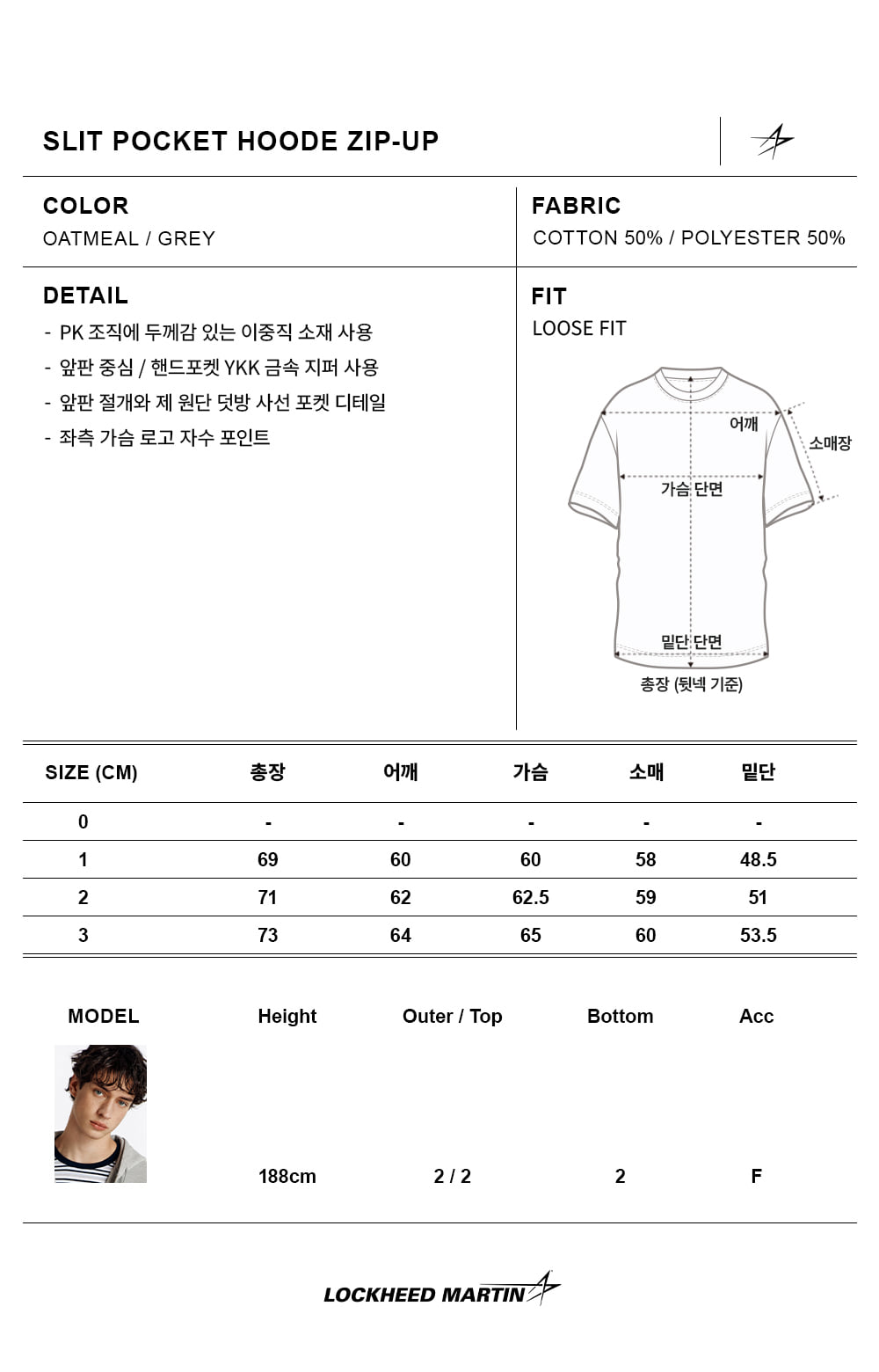 록히드마틴 슬릿 포켓 후드 집업 오트밀