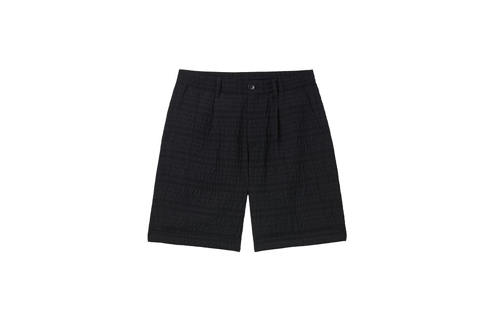 SERIES Set Up Crease Check Wide Shorts Black
