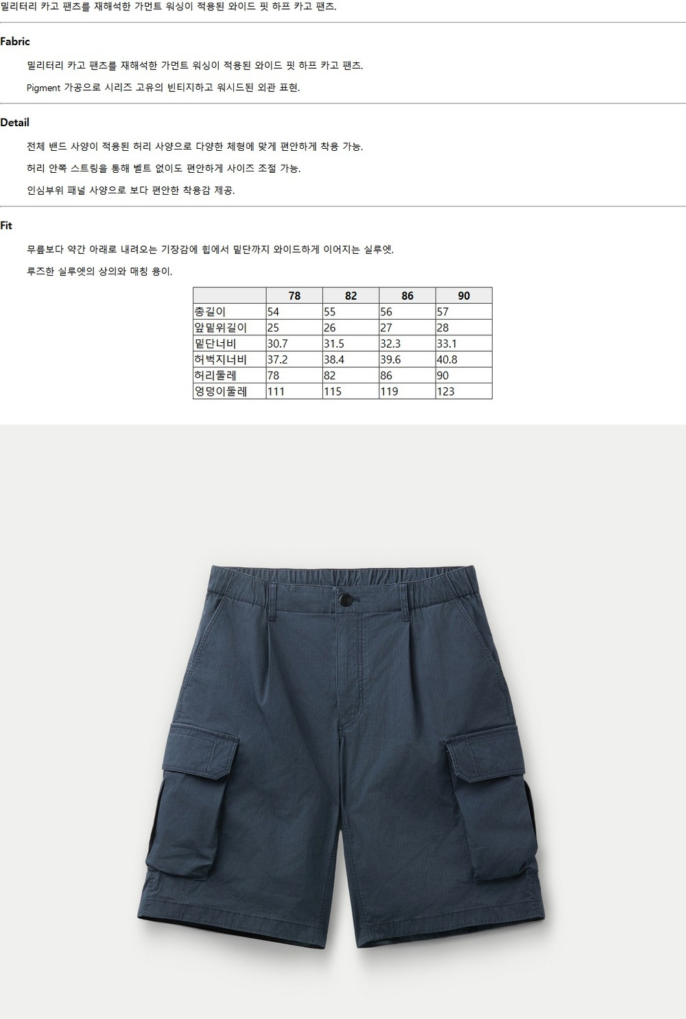 시리즈 가먼트 워싱 와이드 카고 쇼츠 네이비